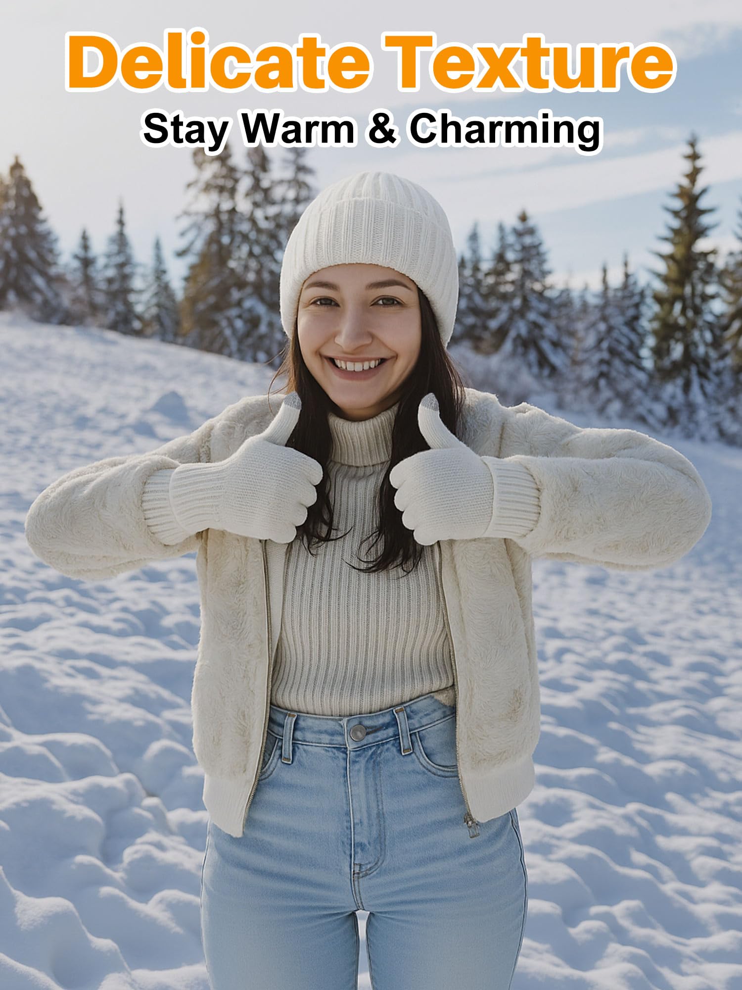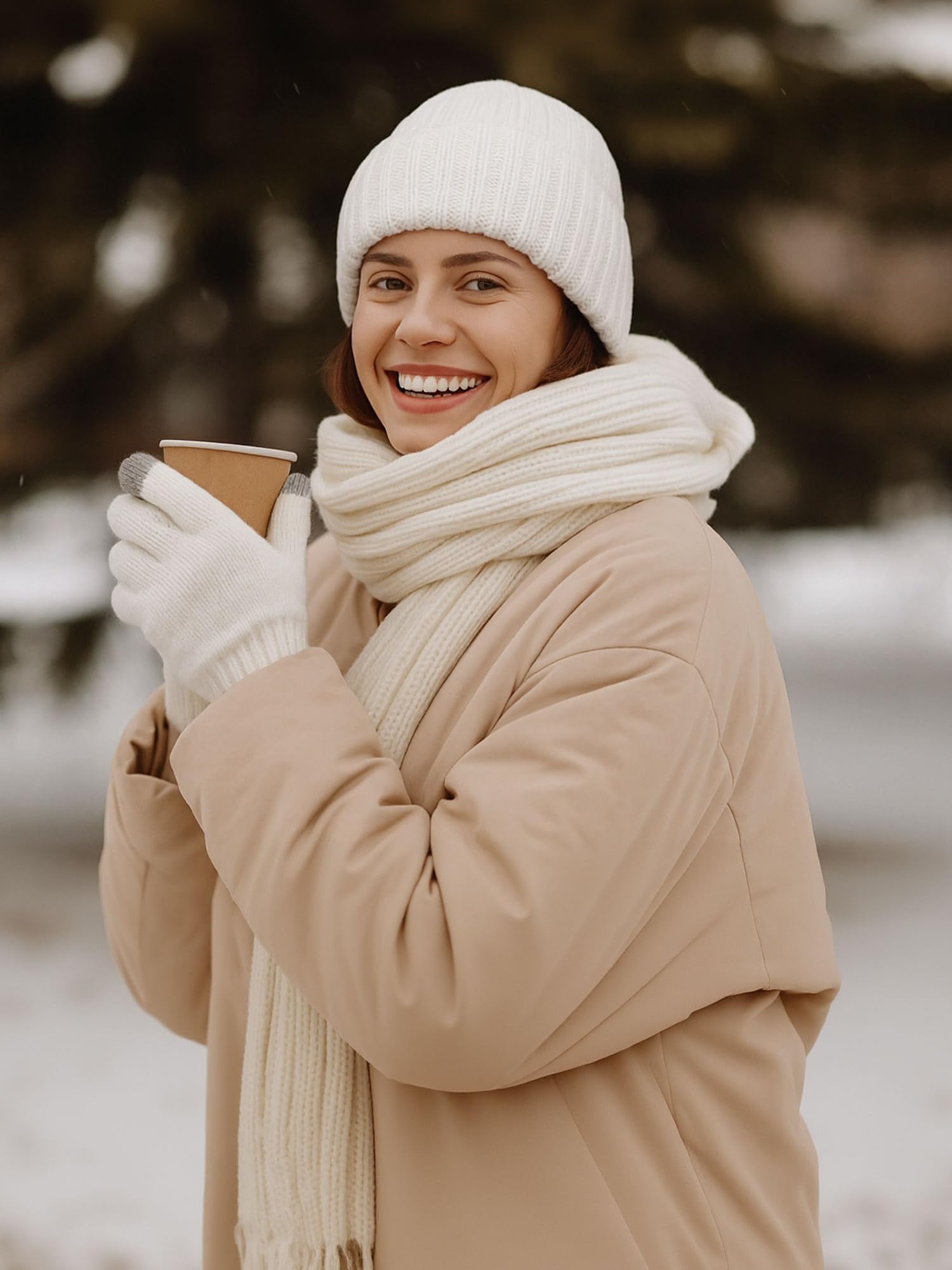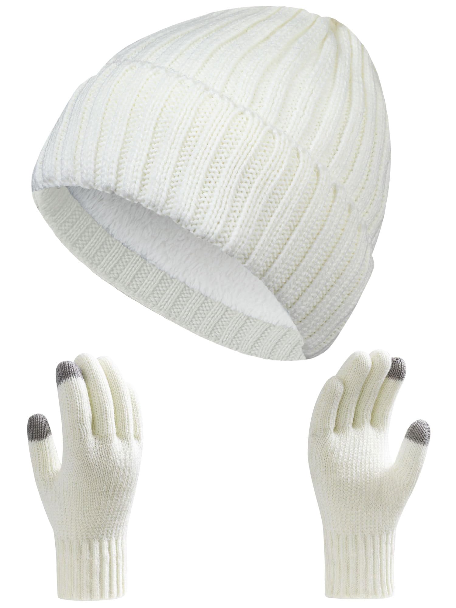 Winter hat and gloves set - knitted without brim, with wool lining, touchscreen gloves, warm skull cap. Suitable for ladies and gentlemen