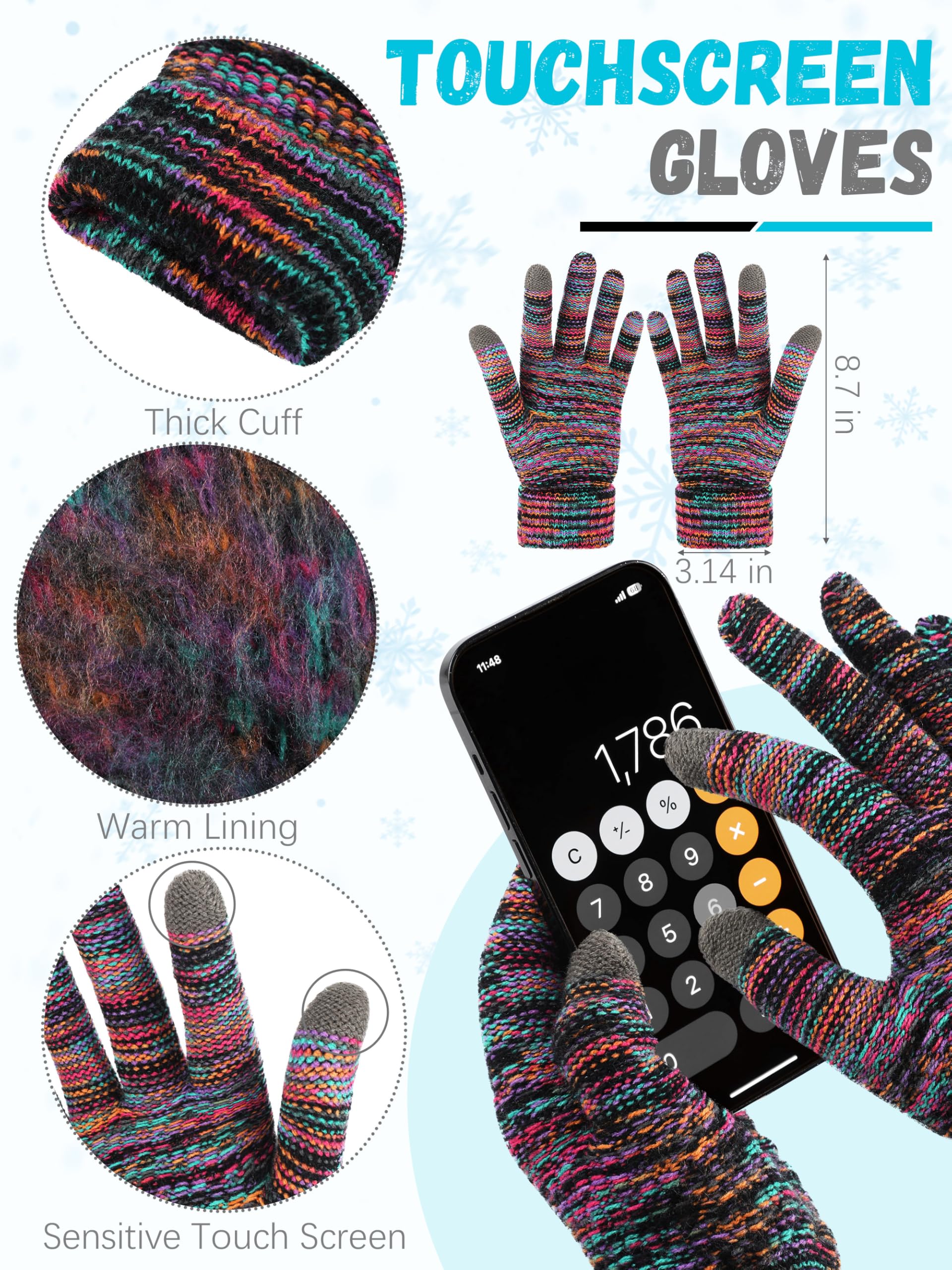 Winter hats, scarves, gloves and earmuffs, warm knitted brimless hats, touchscreen gloves set, winter gift neck scarf, women's style