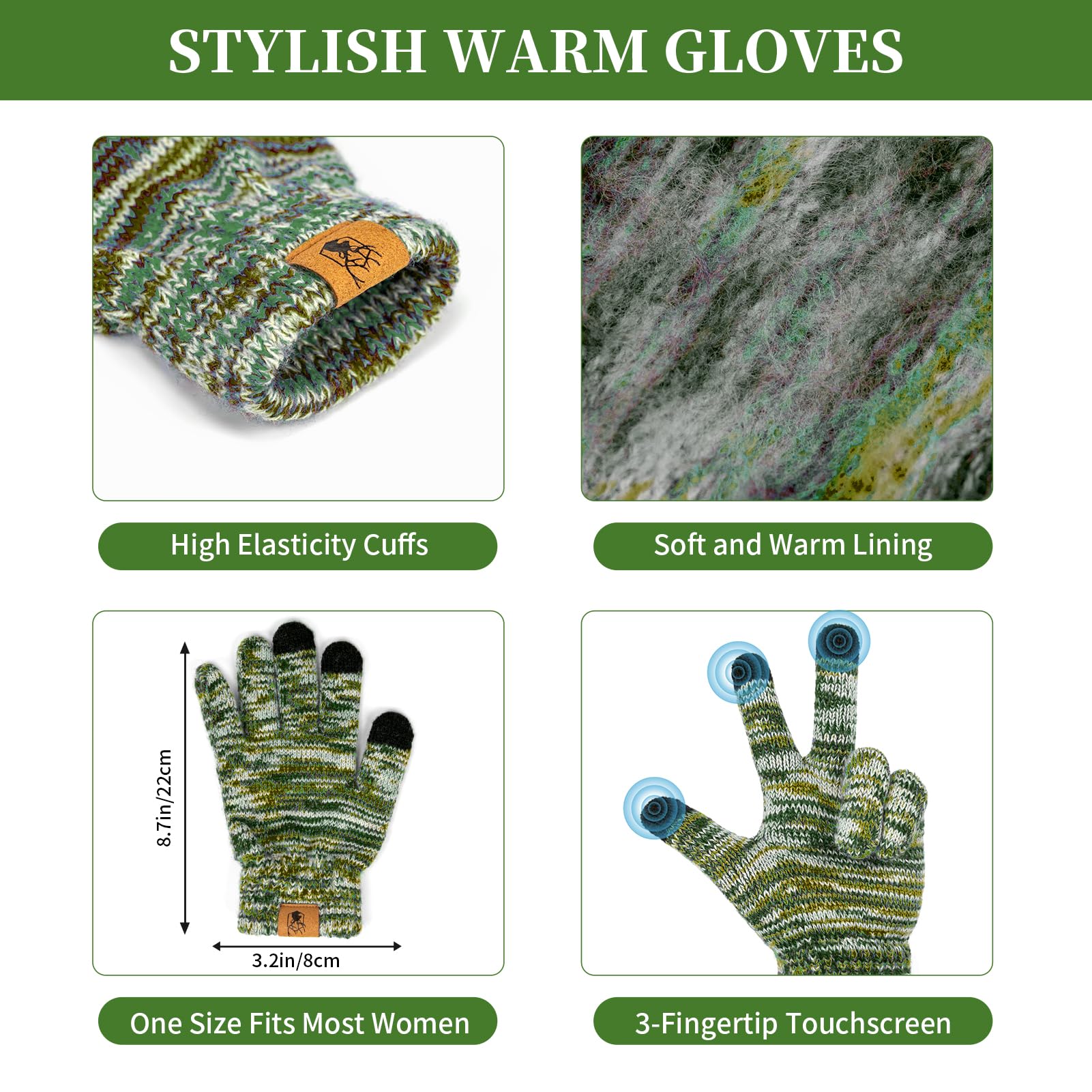 Winter warm unhooded hat scarf and touchscreen glove set for women - Skull hat neck scarf with wool lining