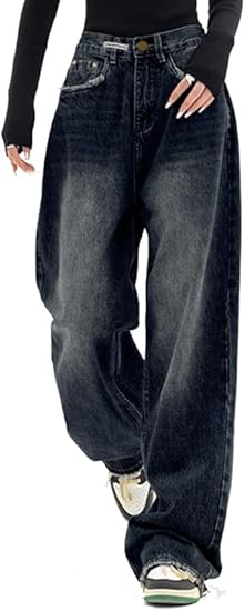 Women Baggy Jeans Mid-Low Waist Boyfriend Streetwear Vintage Jeans Wide Leg Denim Pants