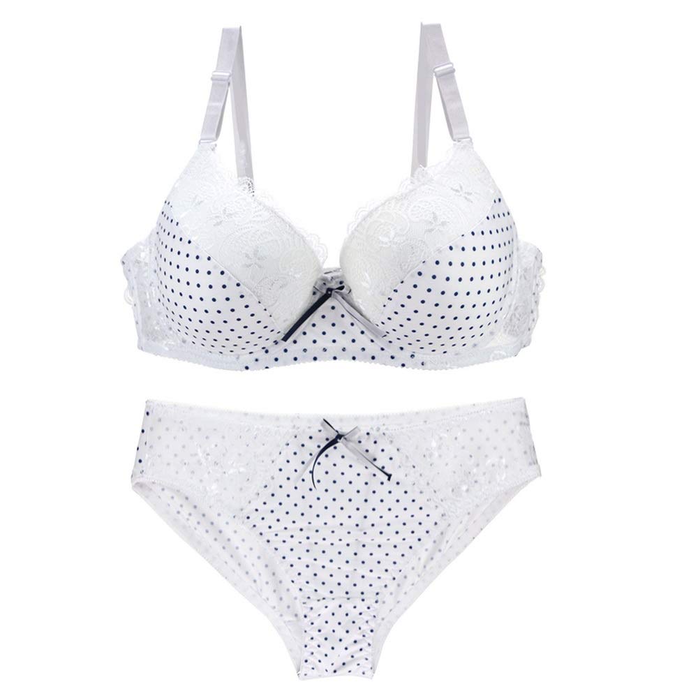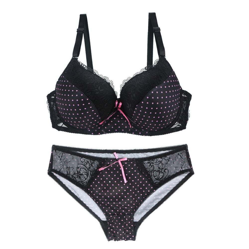 Women Bra and Panty Set Satin Bowknot Lace Polka Dot Underwire Bras Lingerie Set