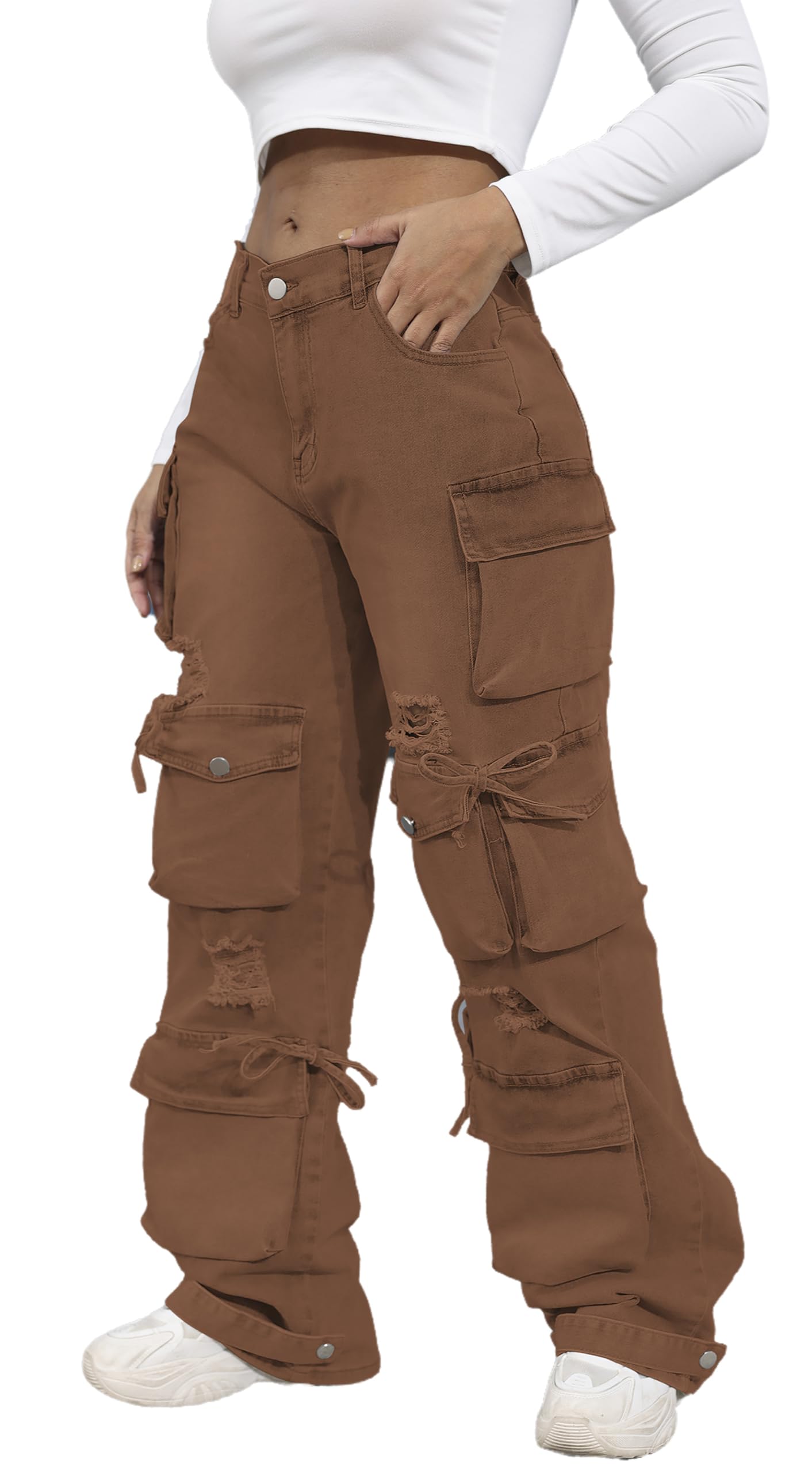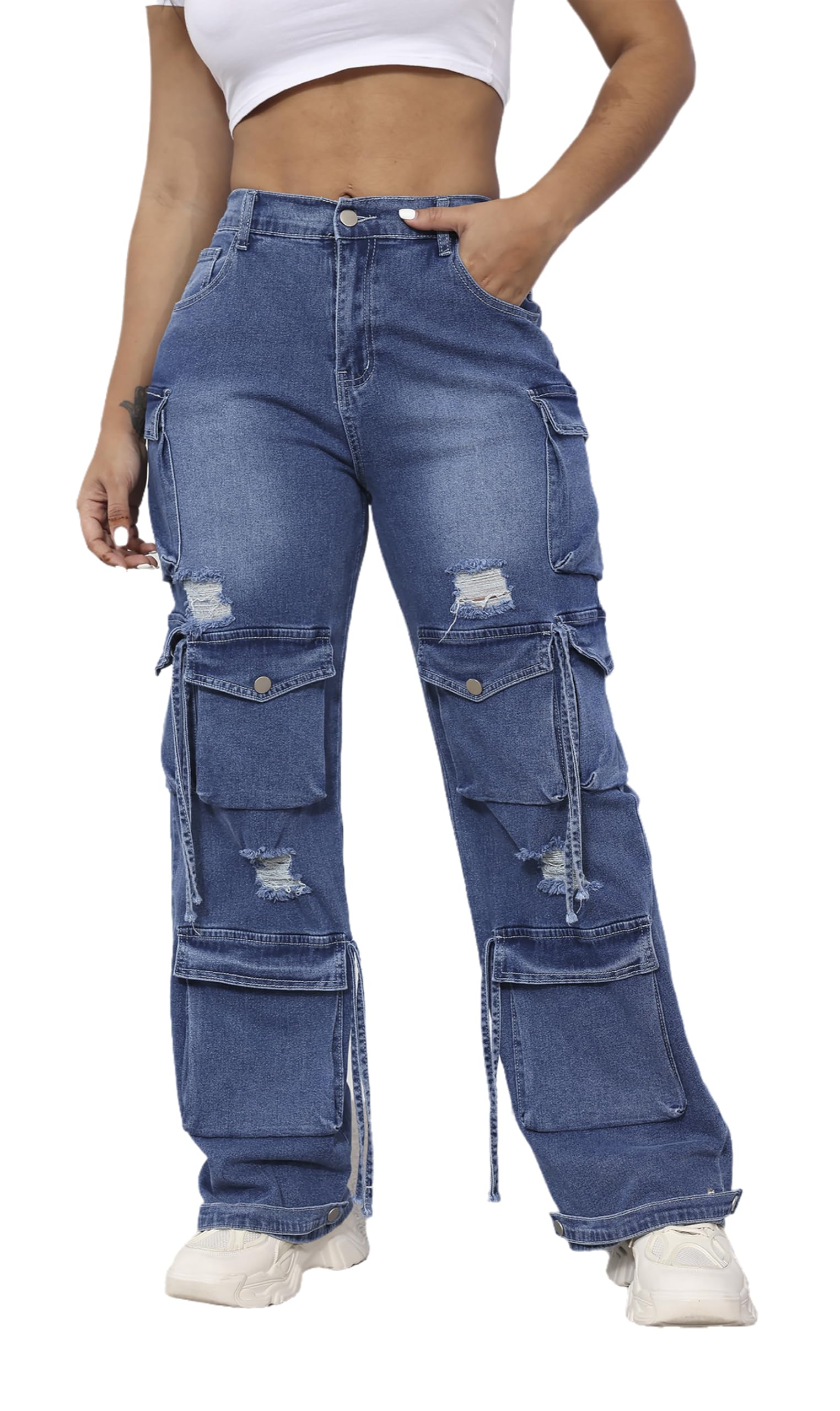 Women’s Baggy Jeans Y2k Cargo Jeans Casual High Waist Baggy Denim Cargo Pants with Pockets Streetwear