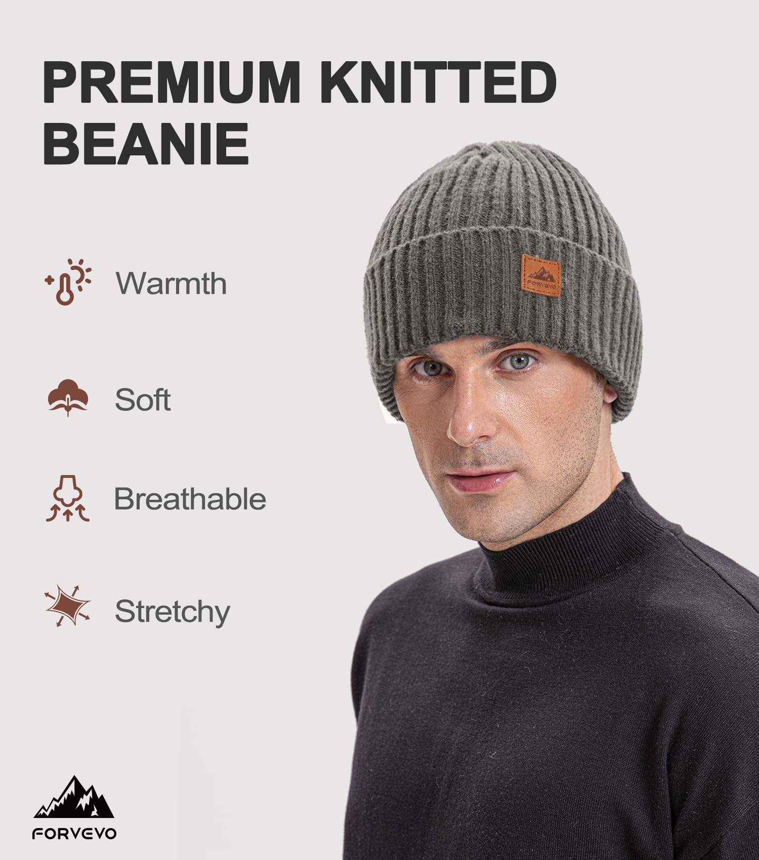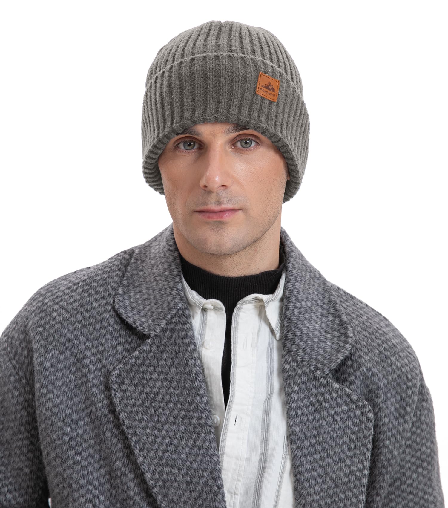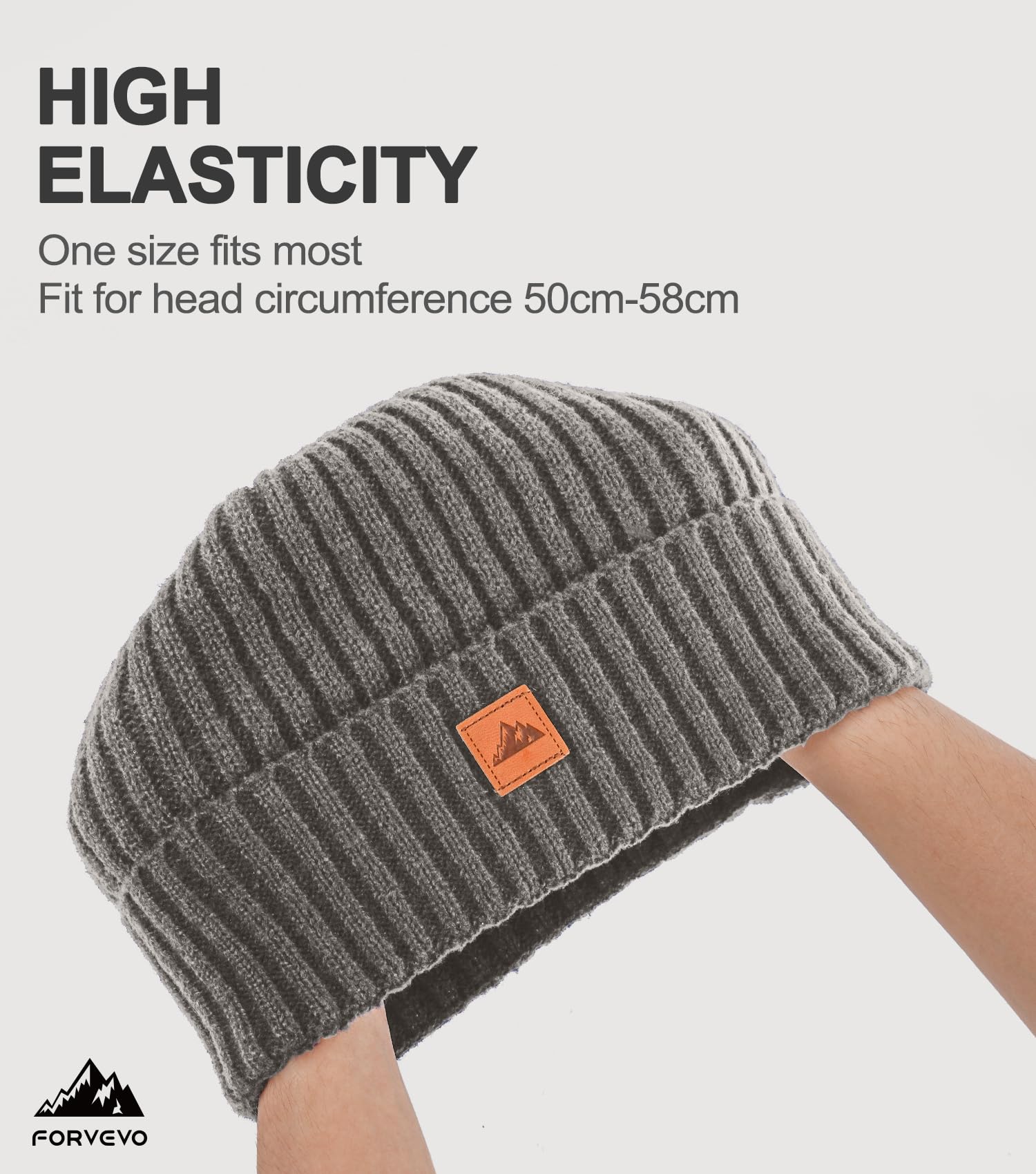 Women's beanie hat, winter warm hat with wool lining, warm knitted beanie hat with ski brim, suitable for cold weather