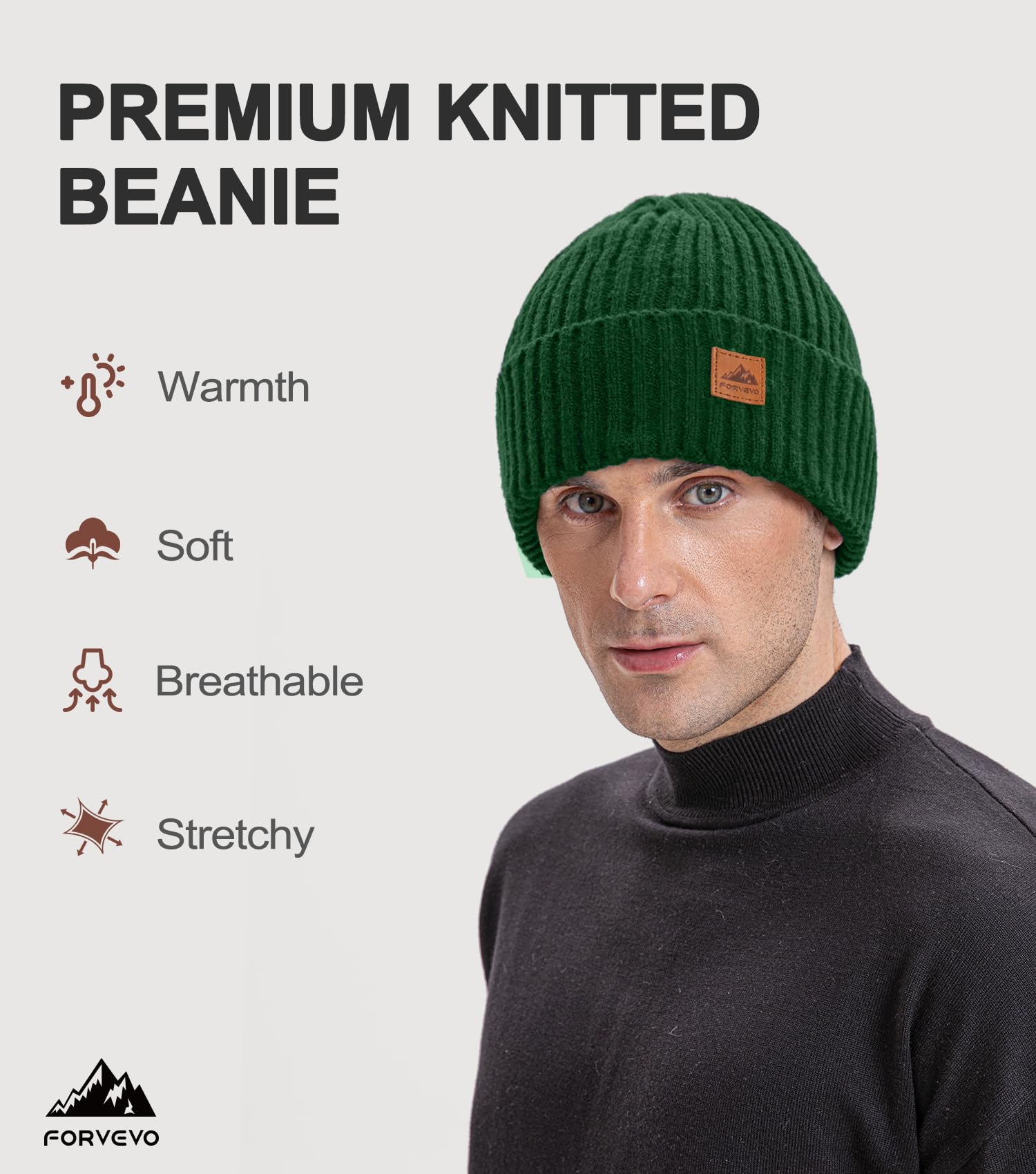 Women's beanie hat, winter warm hat with wool lining, warm knitted beanie hat with ski brim, suitable for cold weather