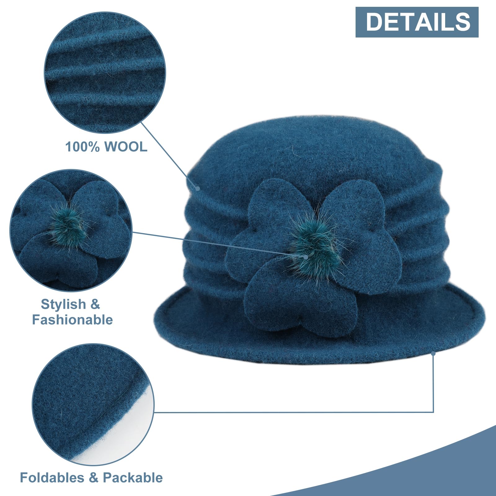 Women's beret French vintage floral wool dress, watch classic winter hat, 20s era