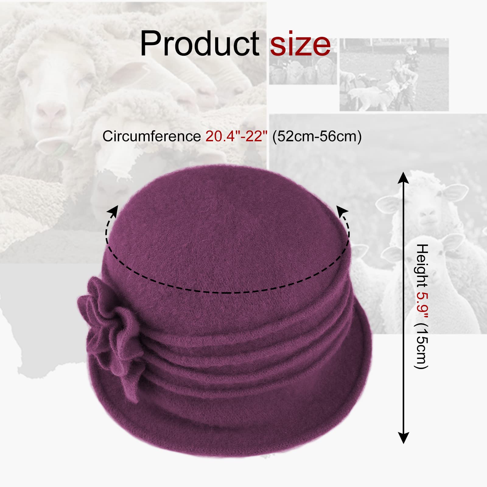 Women's beret French vintage floral wool dress, watch classic winter hat, 20s era