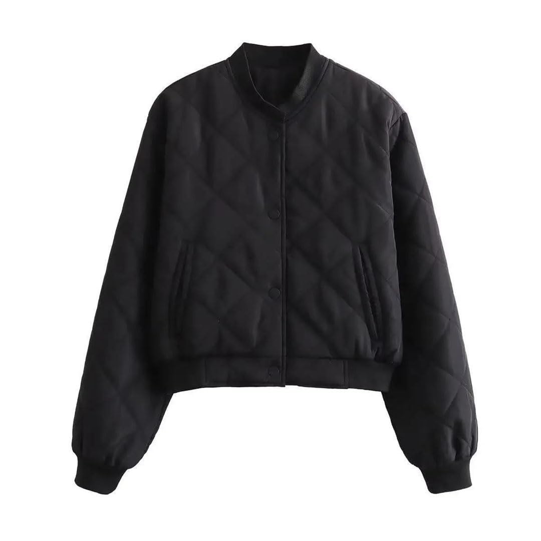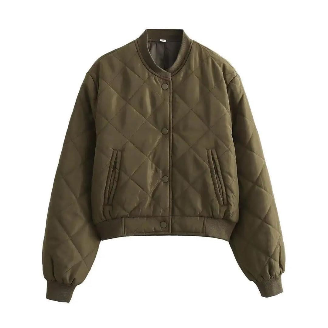 Women's Casual Lightweight Quilted Jacket Stand Collar Button Down Long Sleeve Cropped Coat Comfort Warm Outerwear