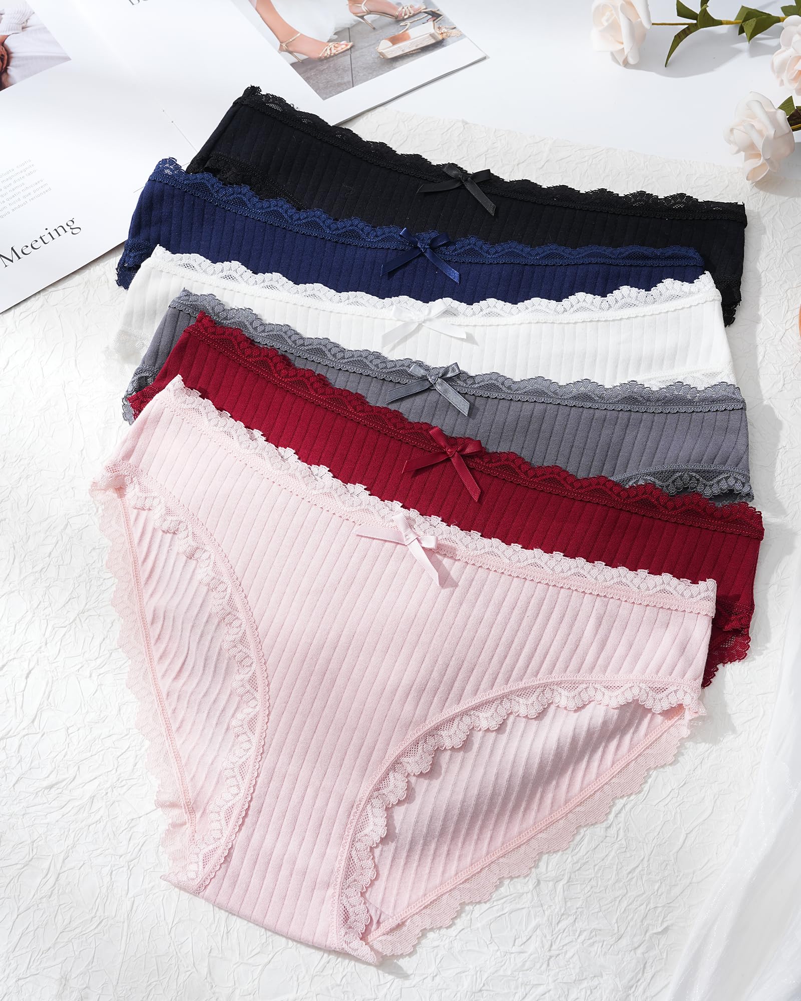 Women's Cotton Bikini Underwear Soft Low Waist Panties Cheeky Lace Underpants