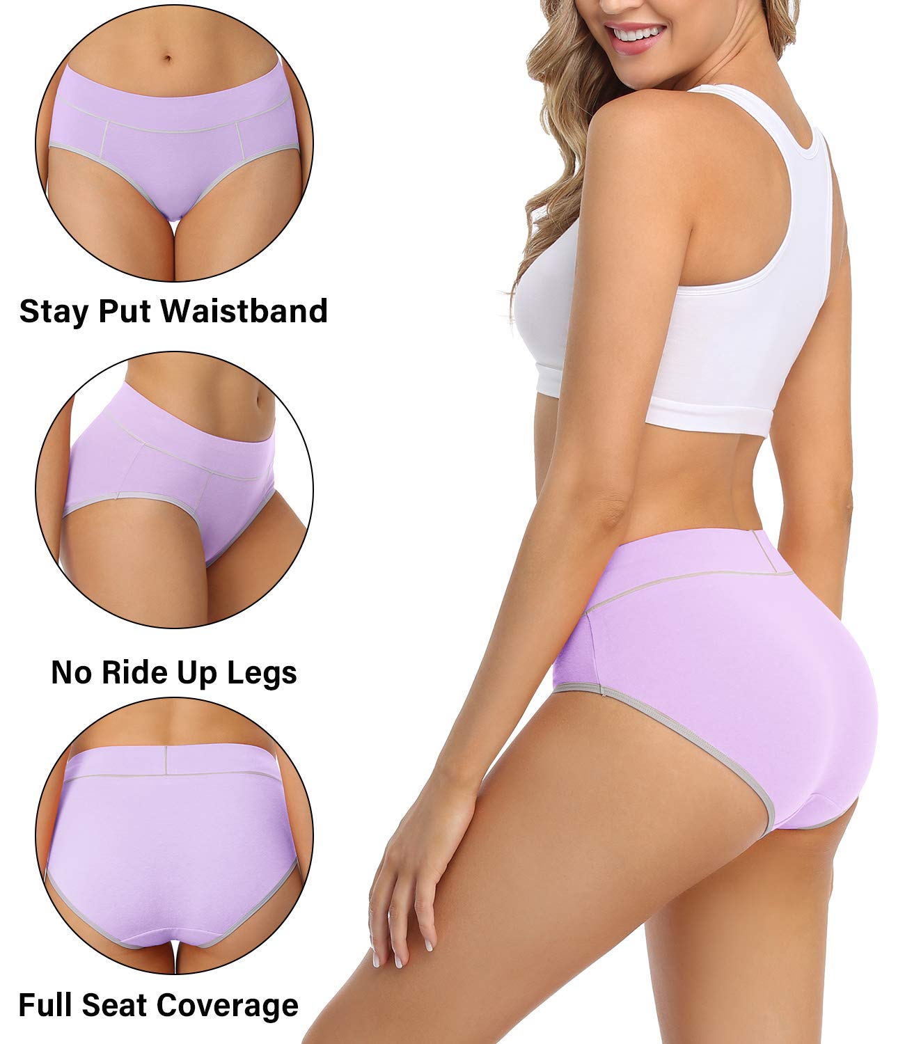 Women's Cotton Underwear Stretch Mid Waisted Briefs Ladies Panties