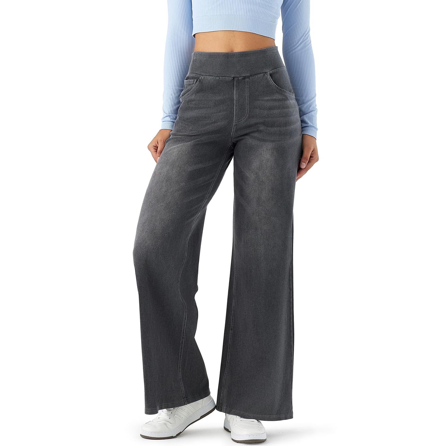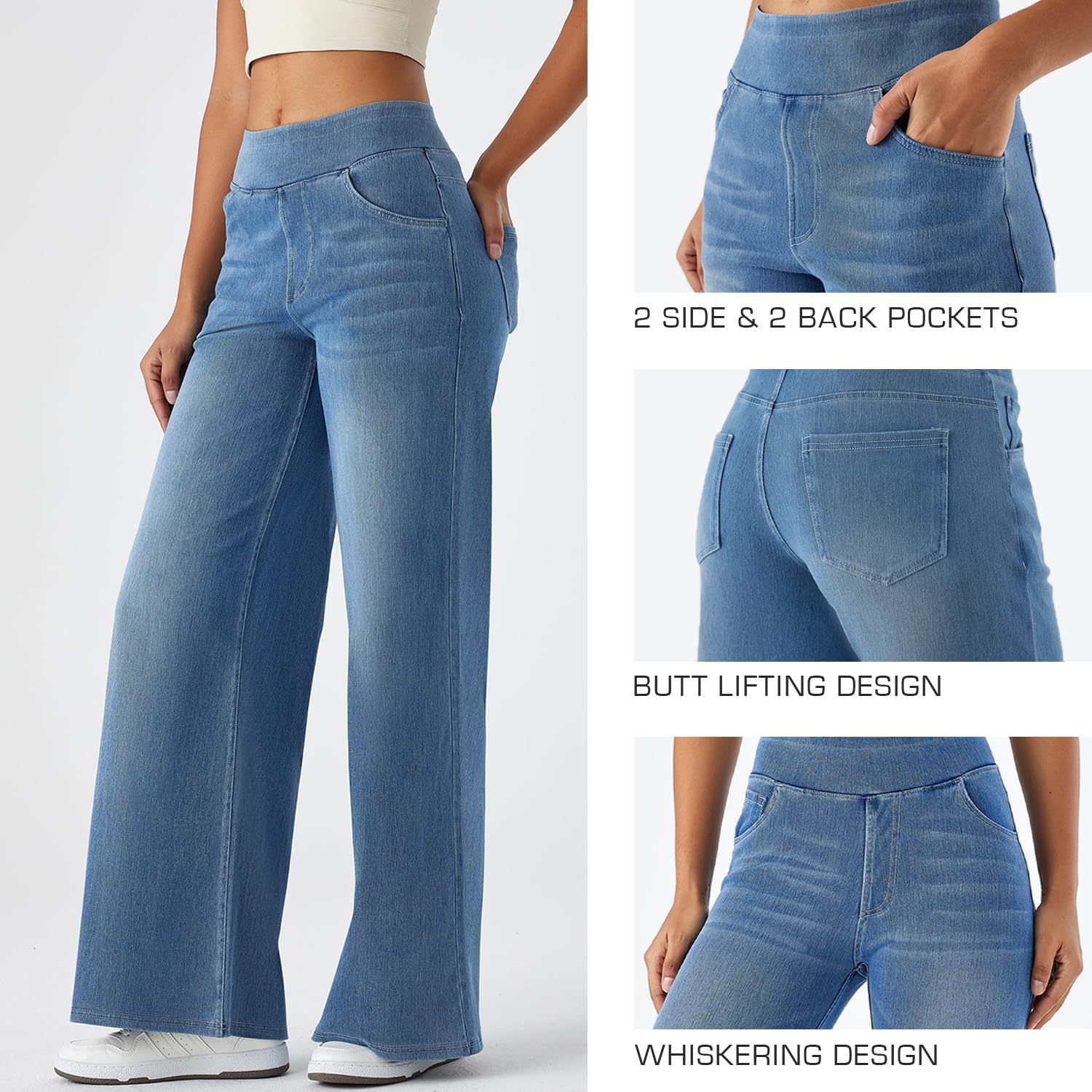 Women's High Rise Wide Leg Jeggings - Stretch Pull On Jeans-Style Pants, Soft Denim with Pockets