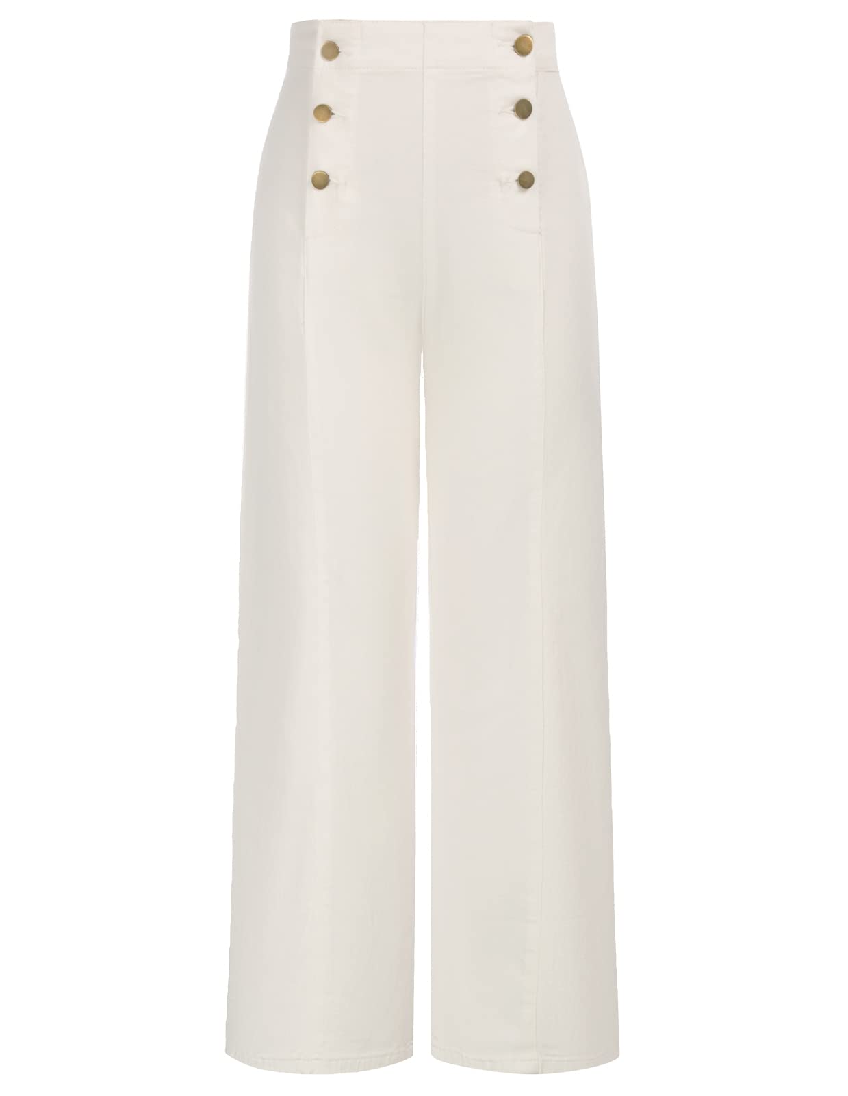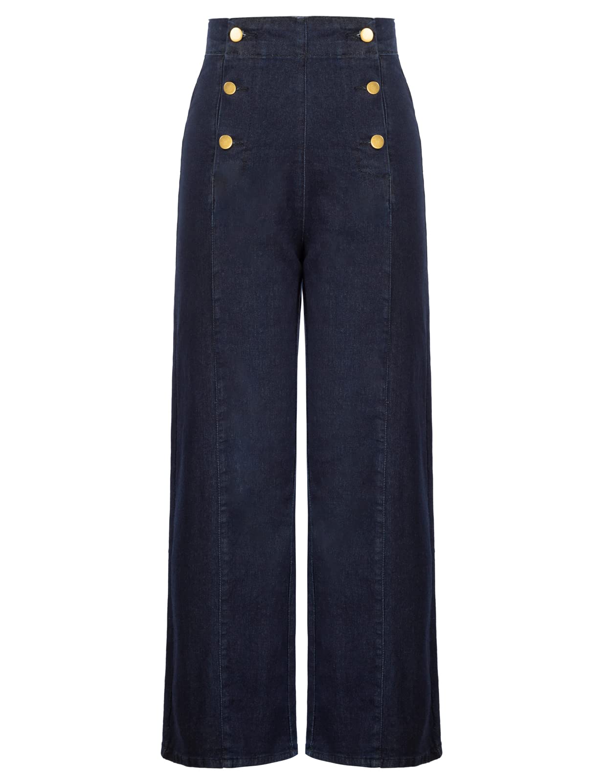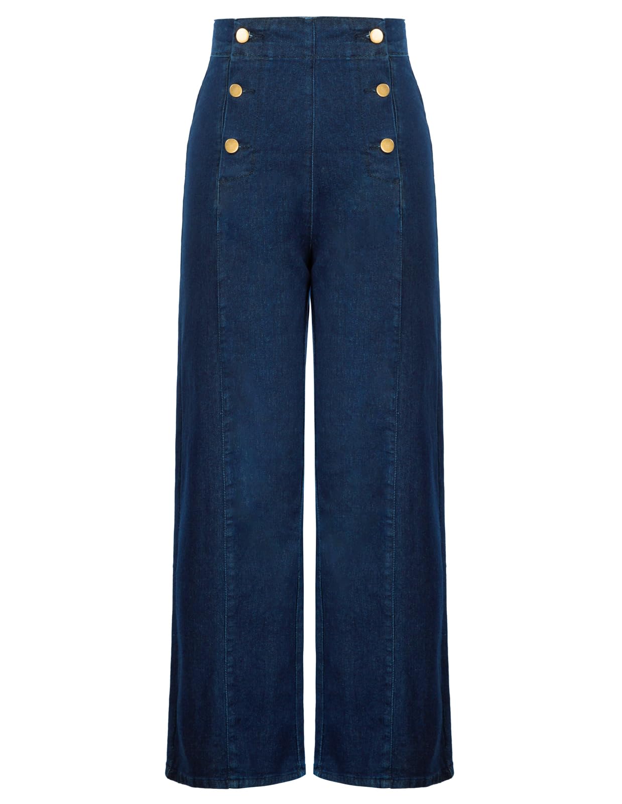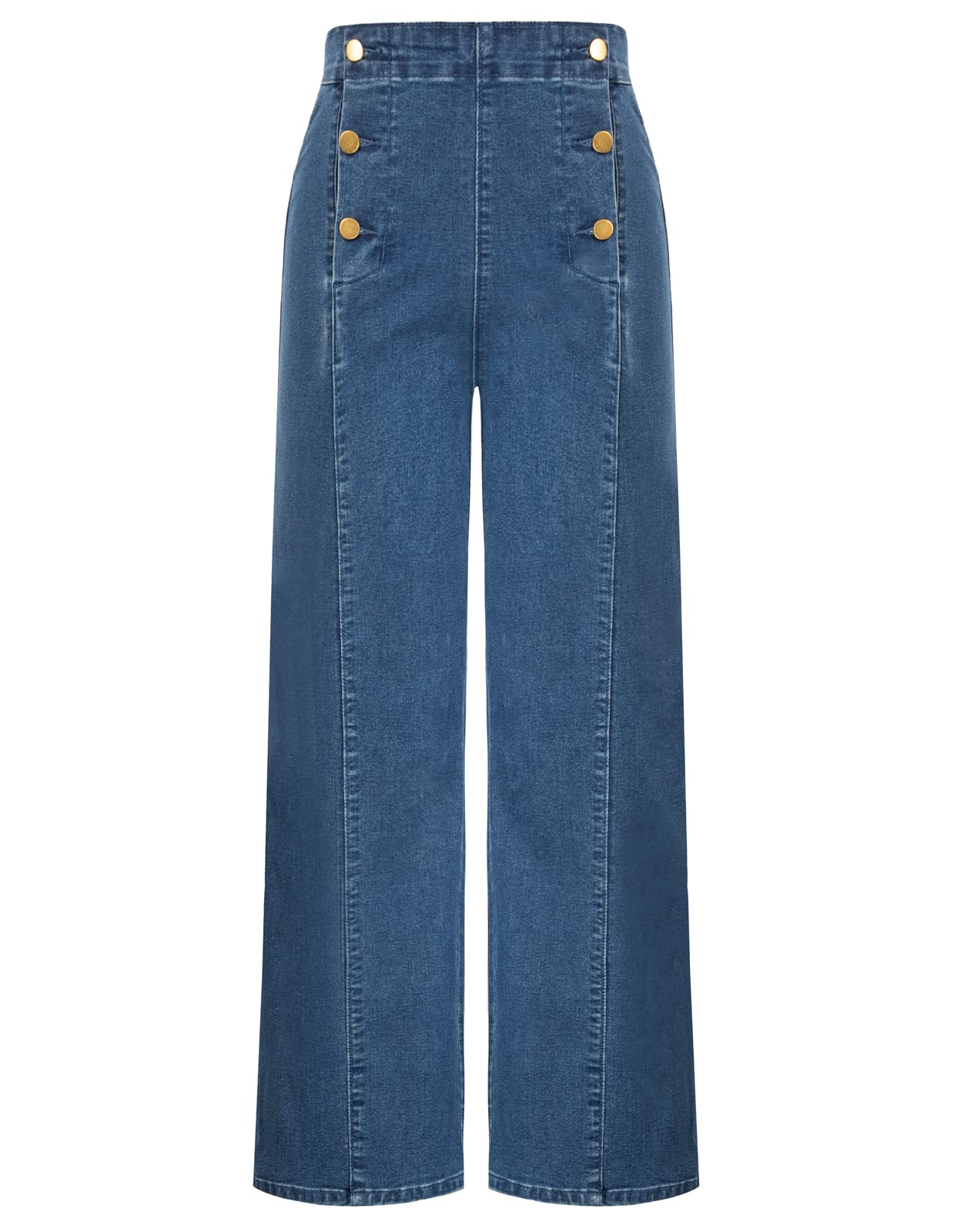 Women's High Waisted Wide Leg Jeans Button Decorated Casual Stretchy Demin Pants with Pockets