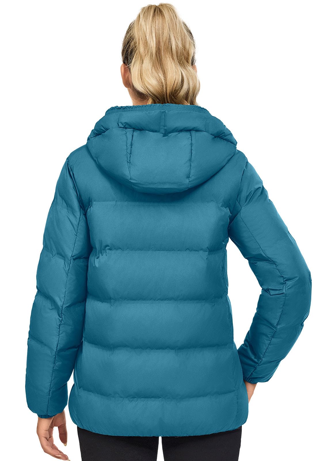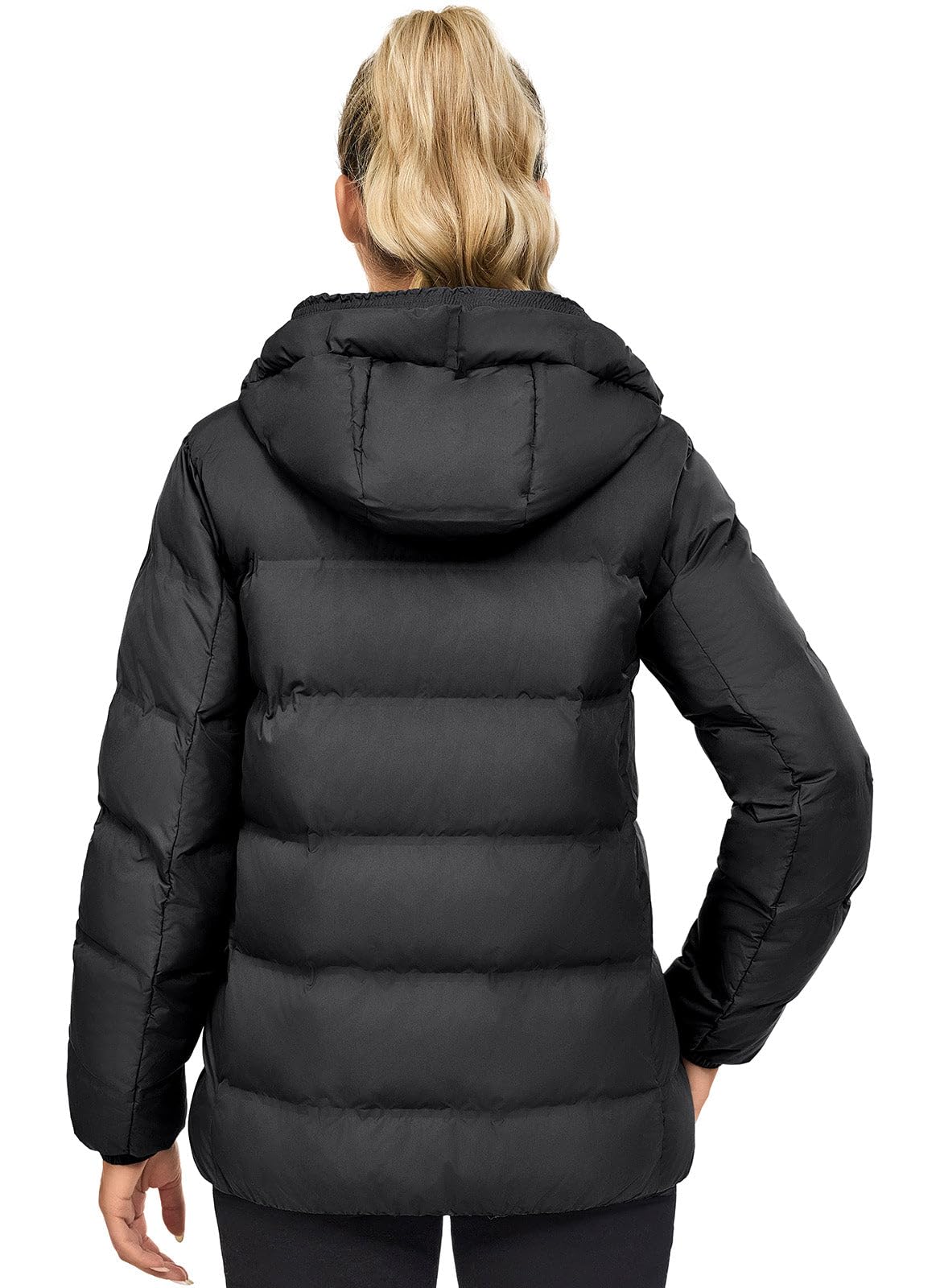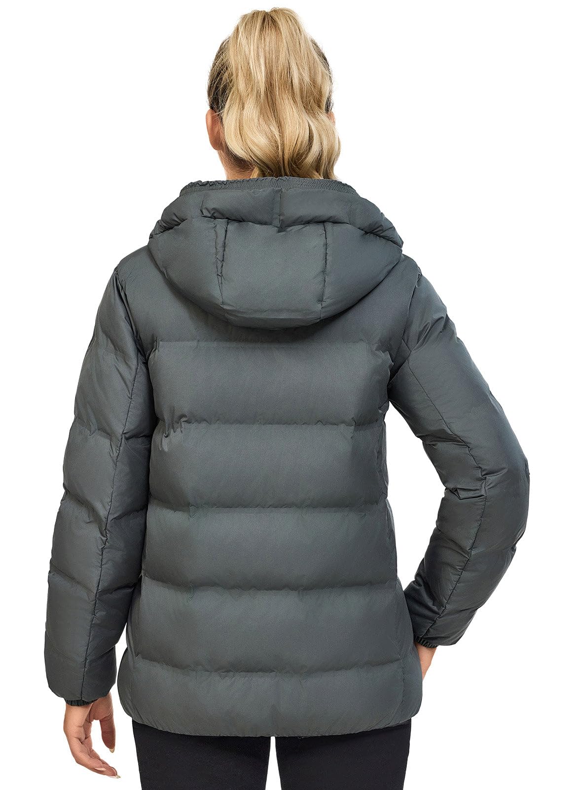 Women's Hooded Puffer Jacket Full-Zip Winter Lightweight Windproof Warm Quilted Coat with Pockets