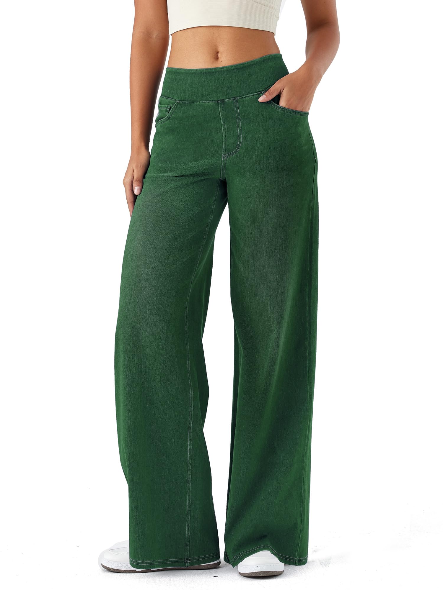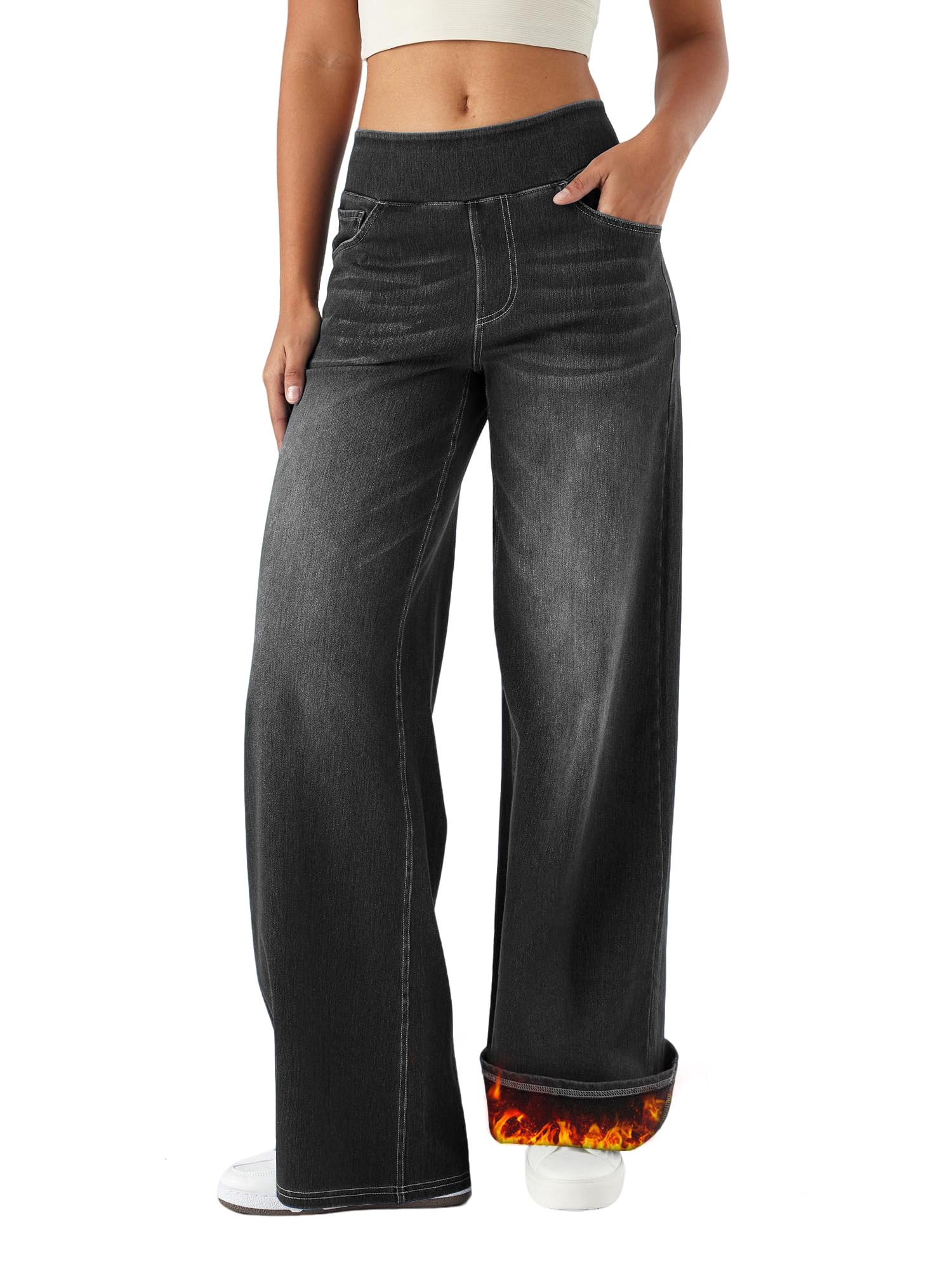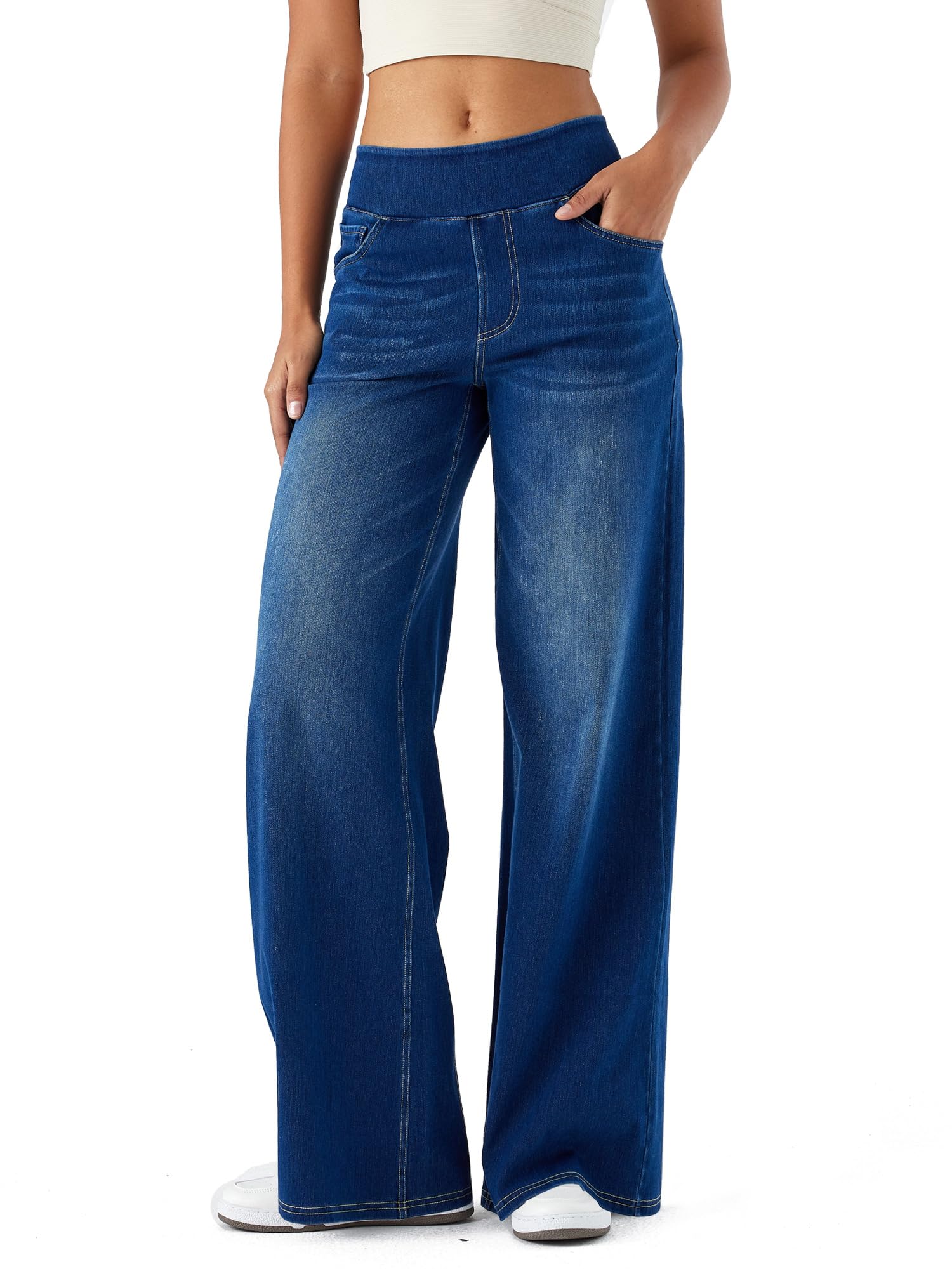 Women's Jeans Wide Leg Pants,Baggy Denim Pants High Waist and Multiple Pockets, Straight Tube, Loose Fit, High Elasticity Casual Women Jeans With