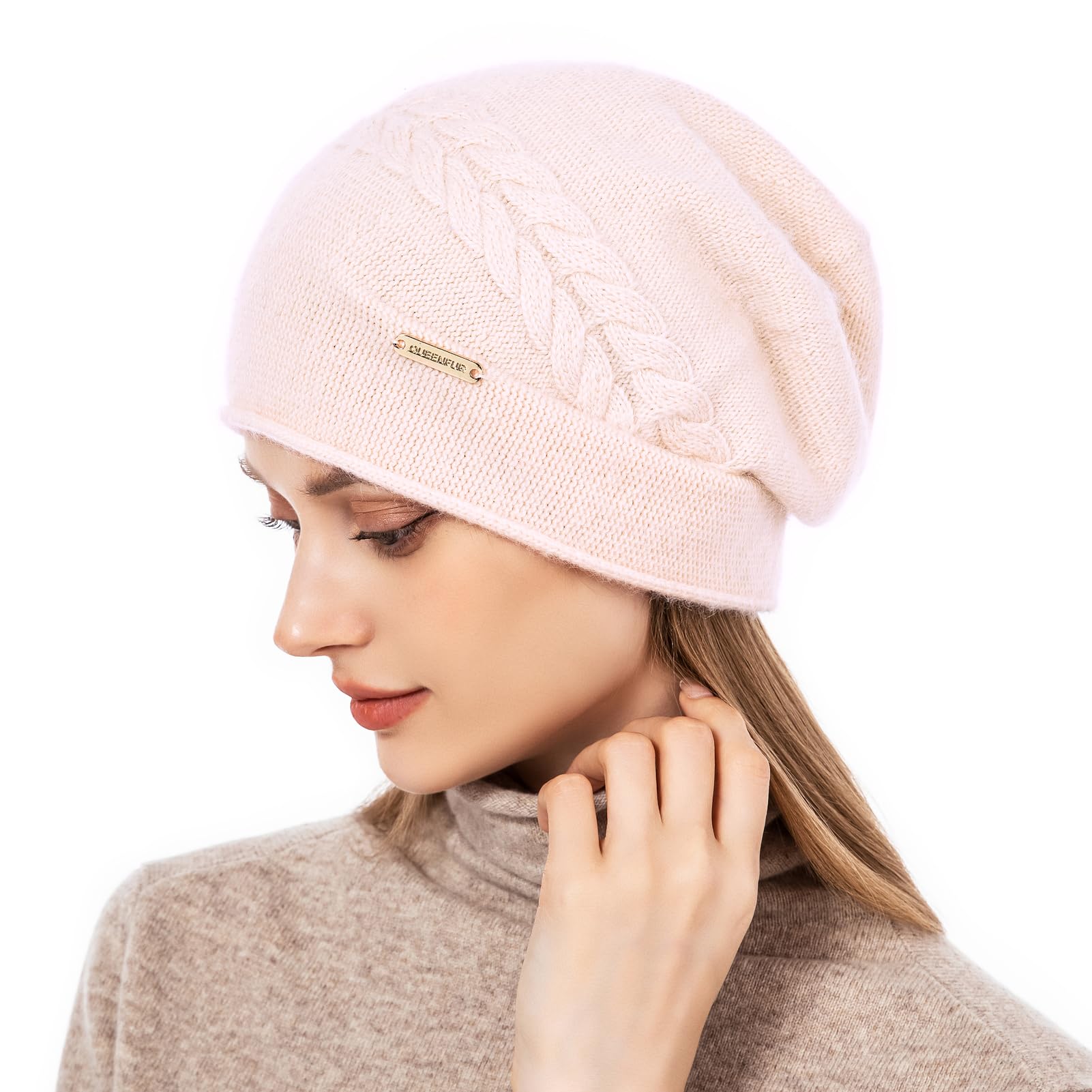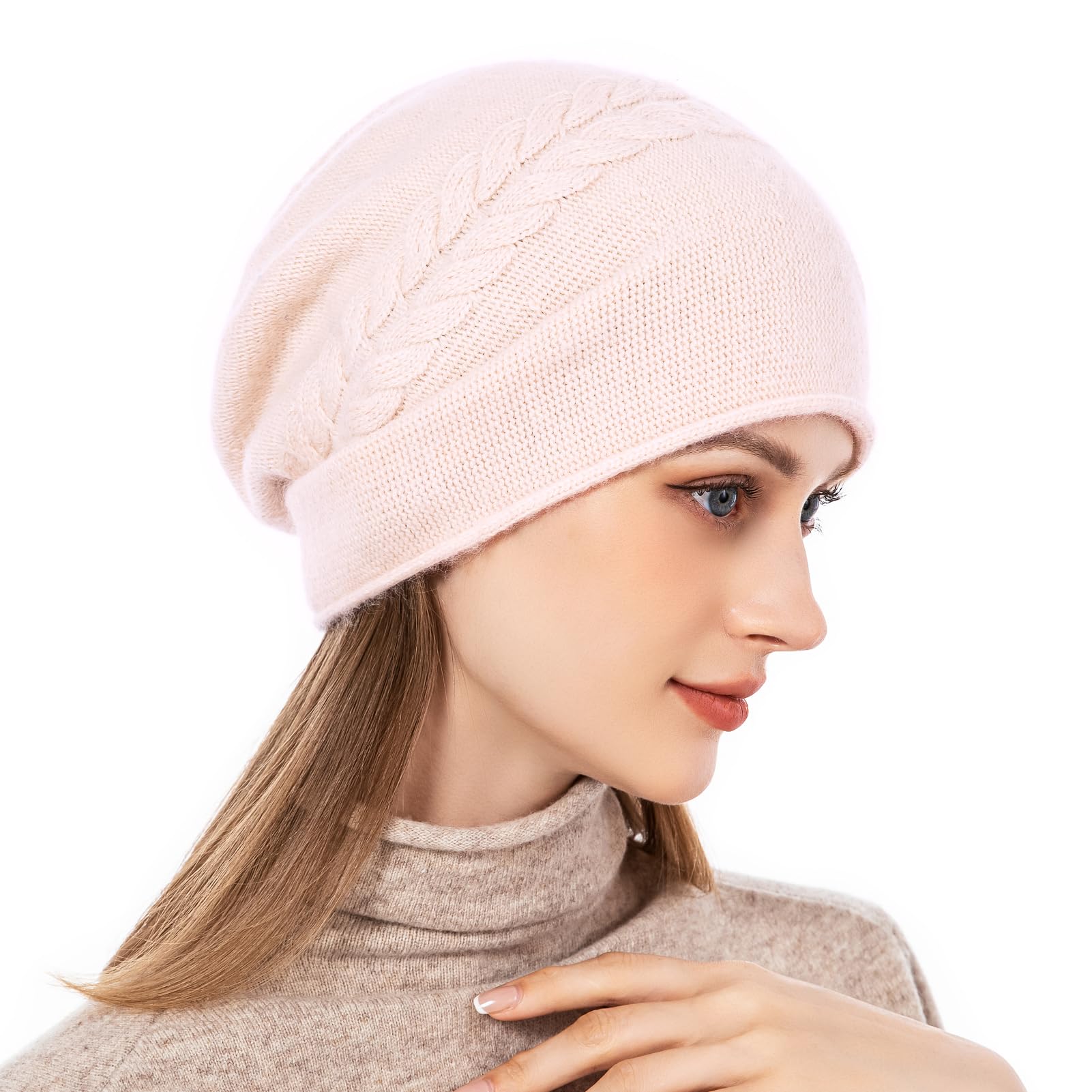 Women's knitted casual beanie, cashmere ski cap, knitted wool, soft and warm winter hat