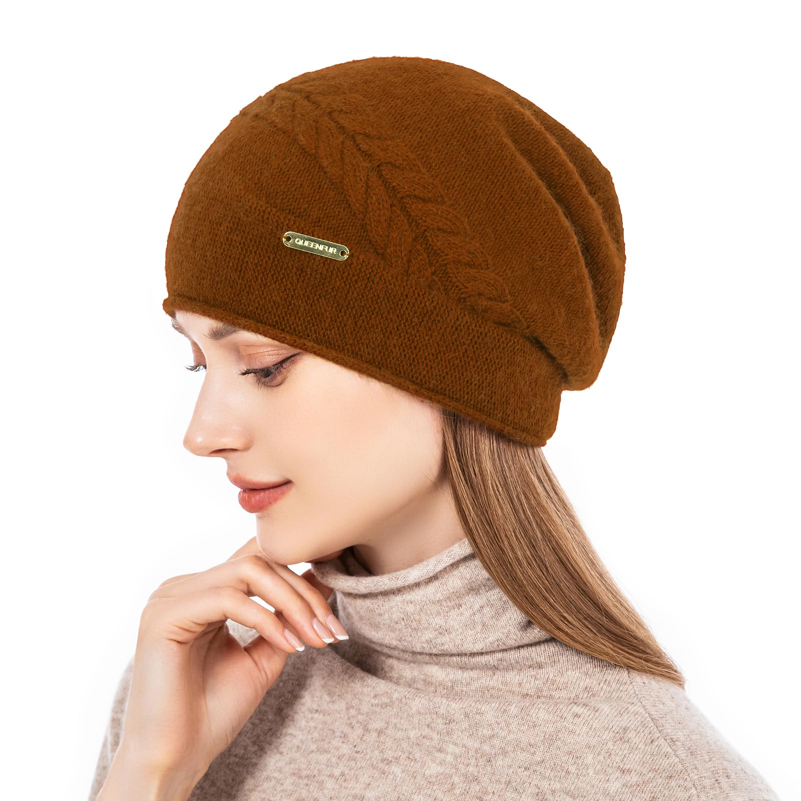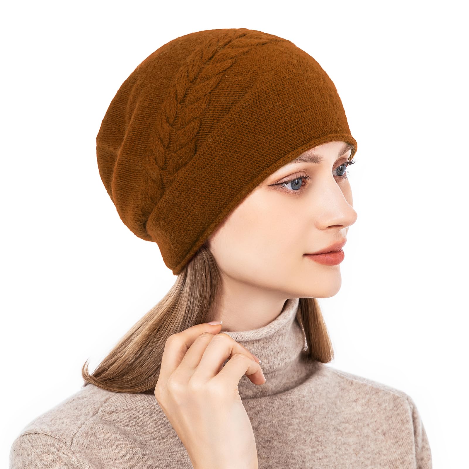 Women's knitted casual beanie, cashmere ski cap, knitted wool, soft and warm winter hat