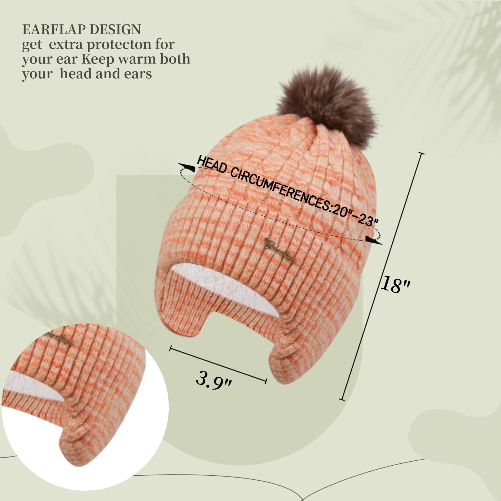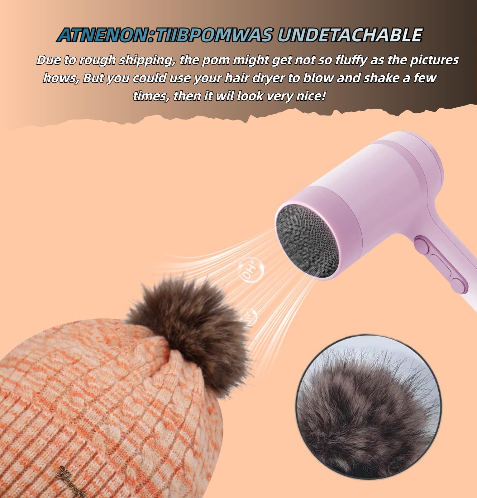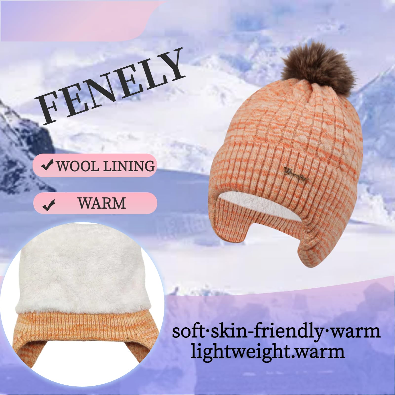 Women's knitted warm brimless hat for winter, with cashmere inner layer, thick and warm snow cap featuring fluffy pompoms