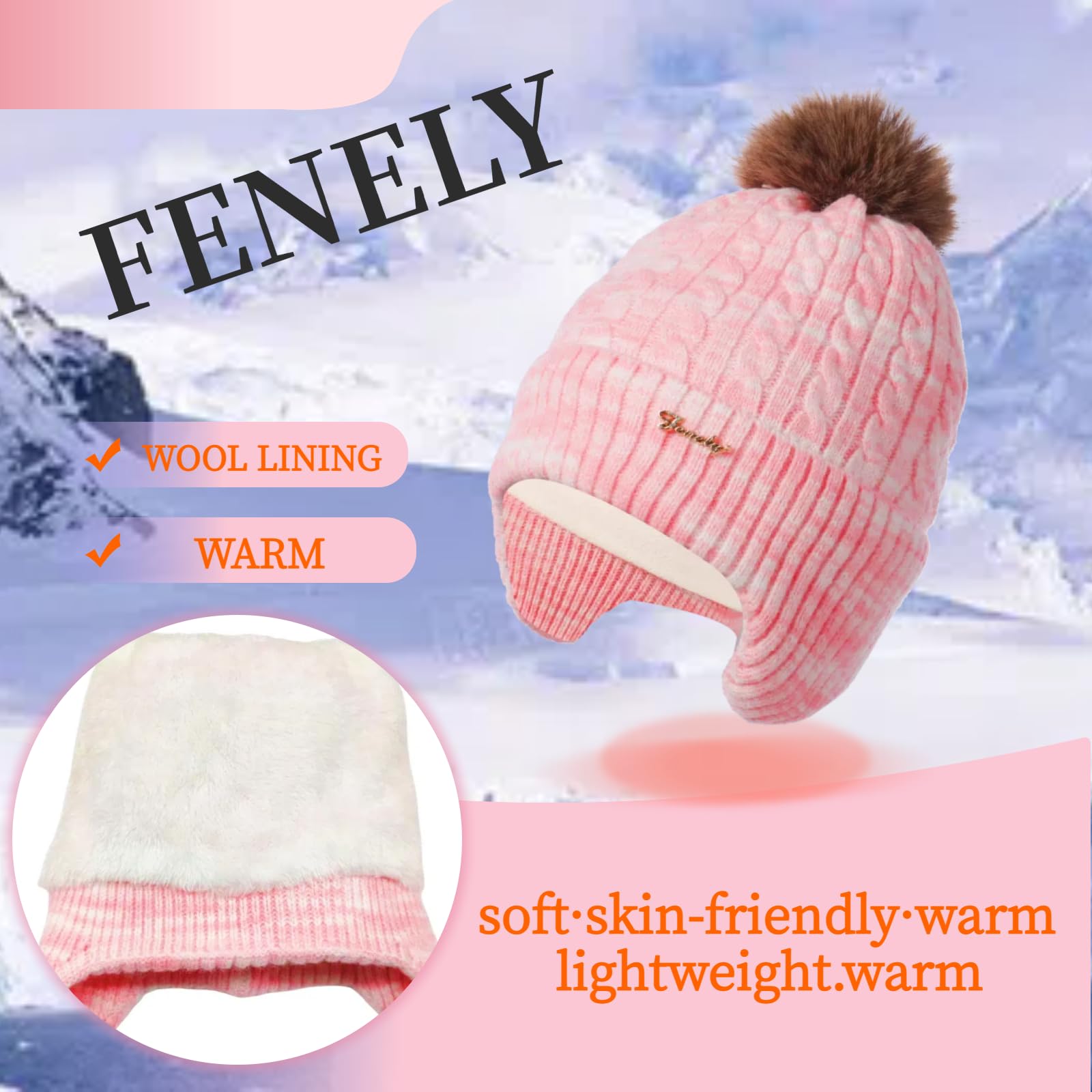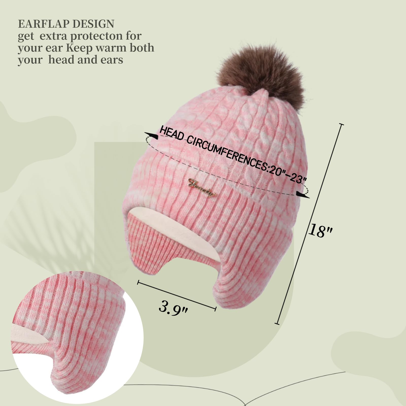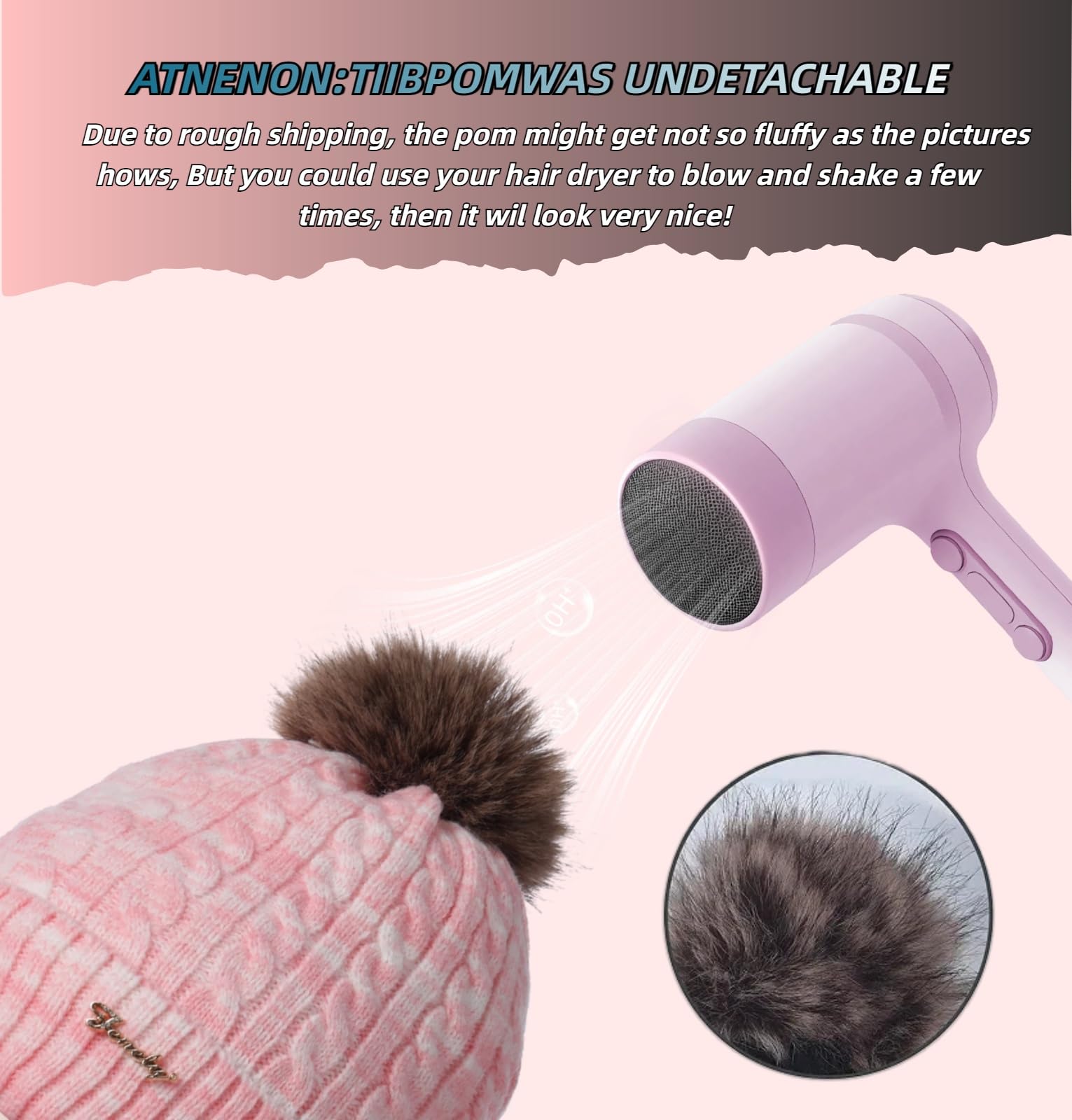 Women's knitted warm brimless hat for winter, with cashmere inner layer, thick and warm snow cap featuring fluffy pompoms