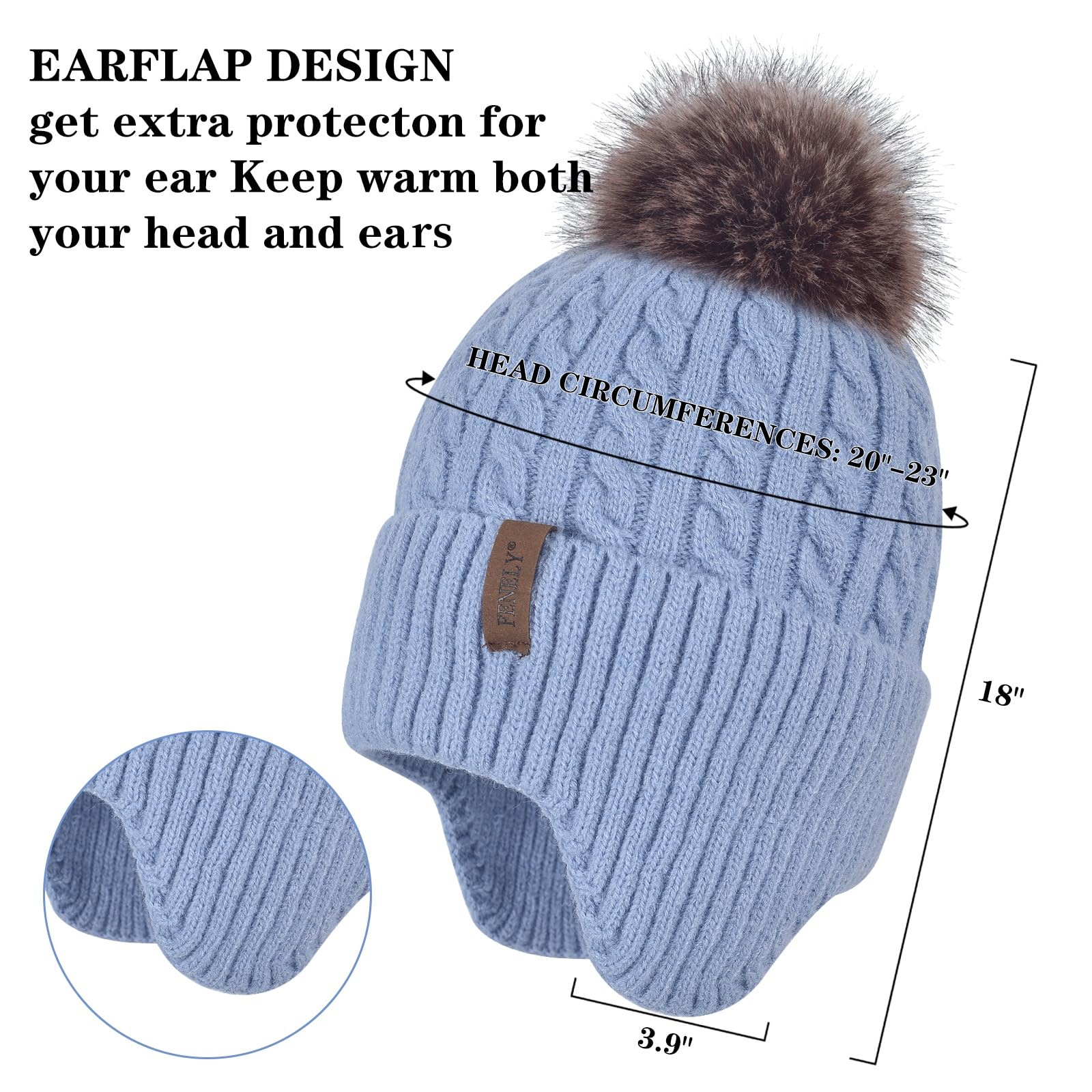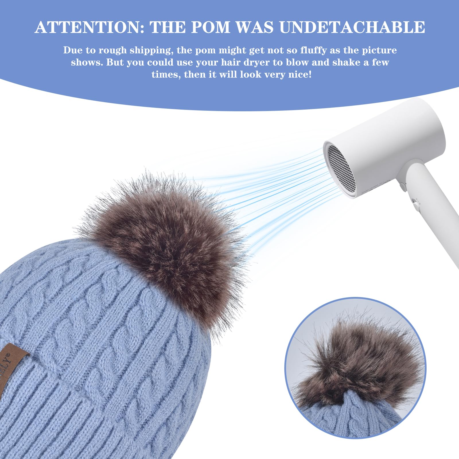 Women's knitted warm brimless hat for winter, with cashmere inner layer, thick and warm snow cap featuring fluffy pompoms