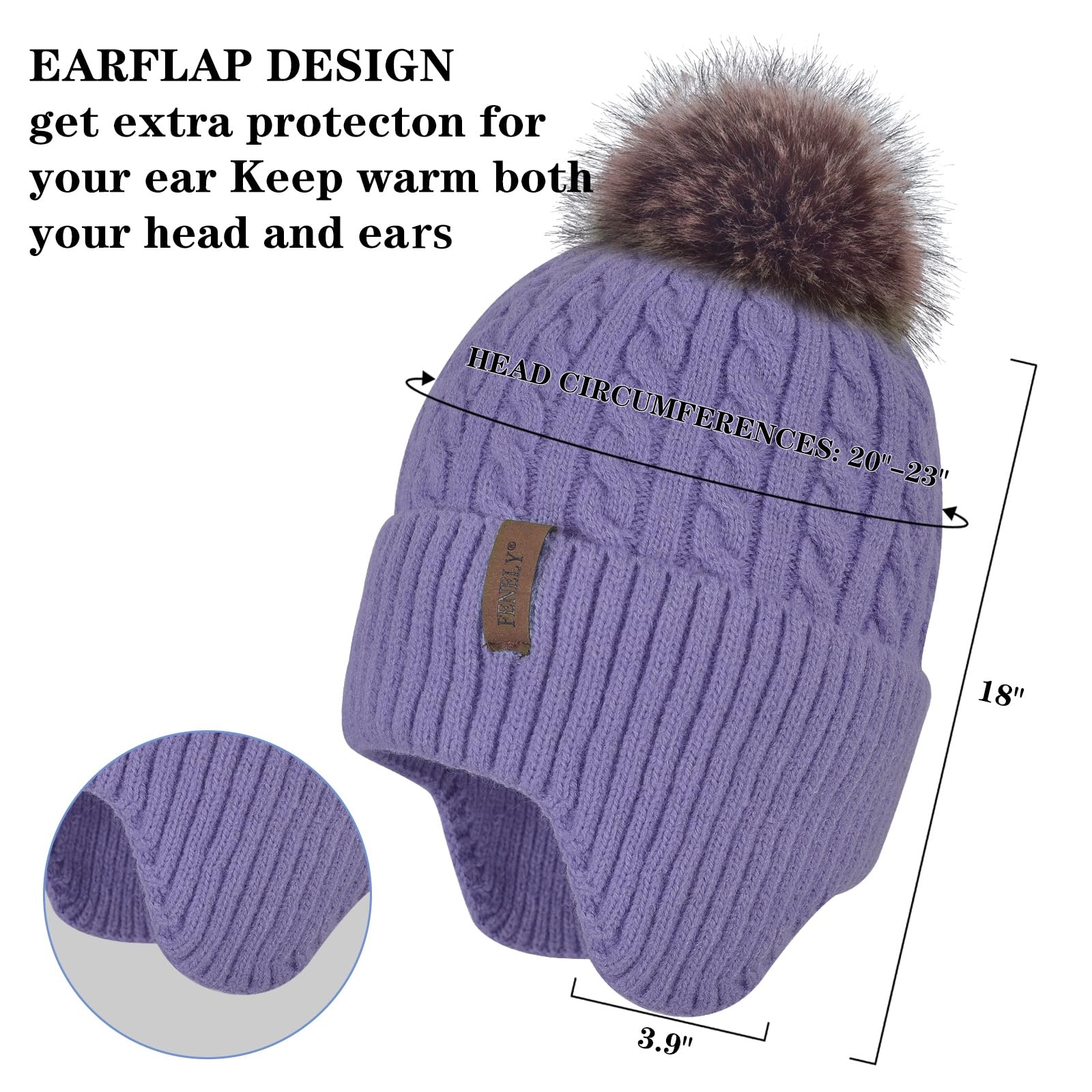 Women's knitted warm brimless hat for winter, with cashmere inner layer, thick and warm snow cap featuring fluffy pompoms