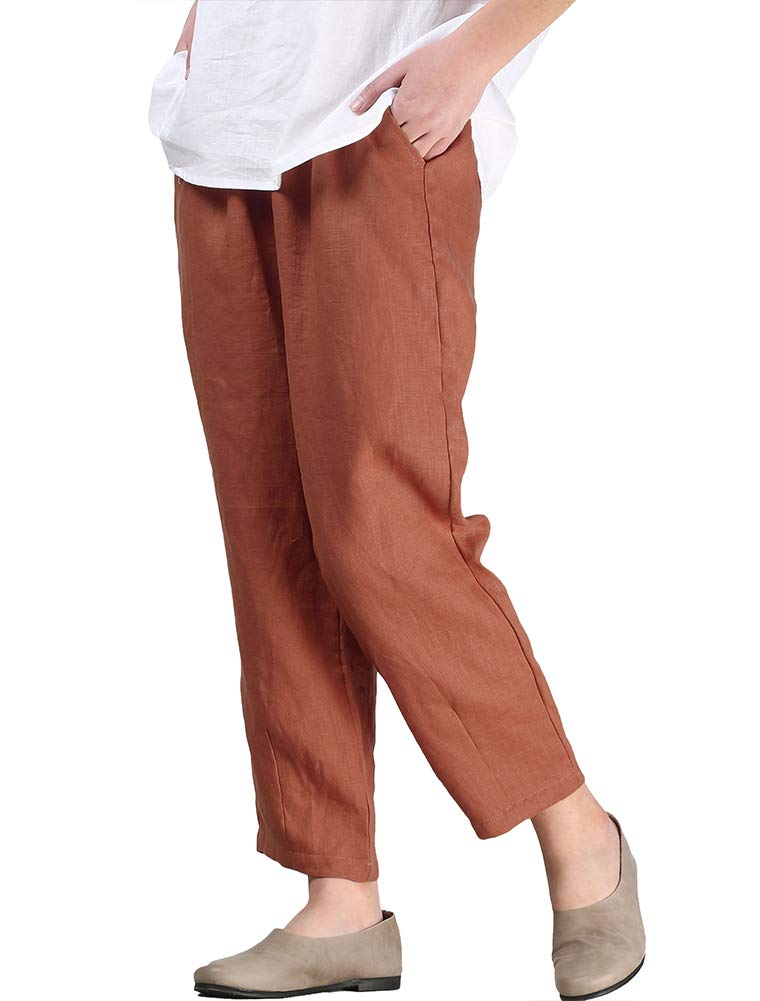 Women's Linen Cropped Pants Tapered Ankle Capris Trousers Elastic Waist