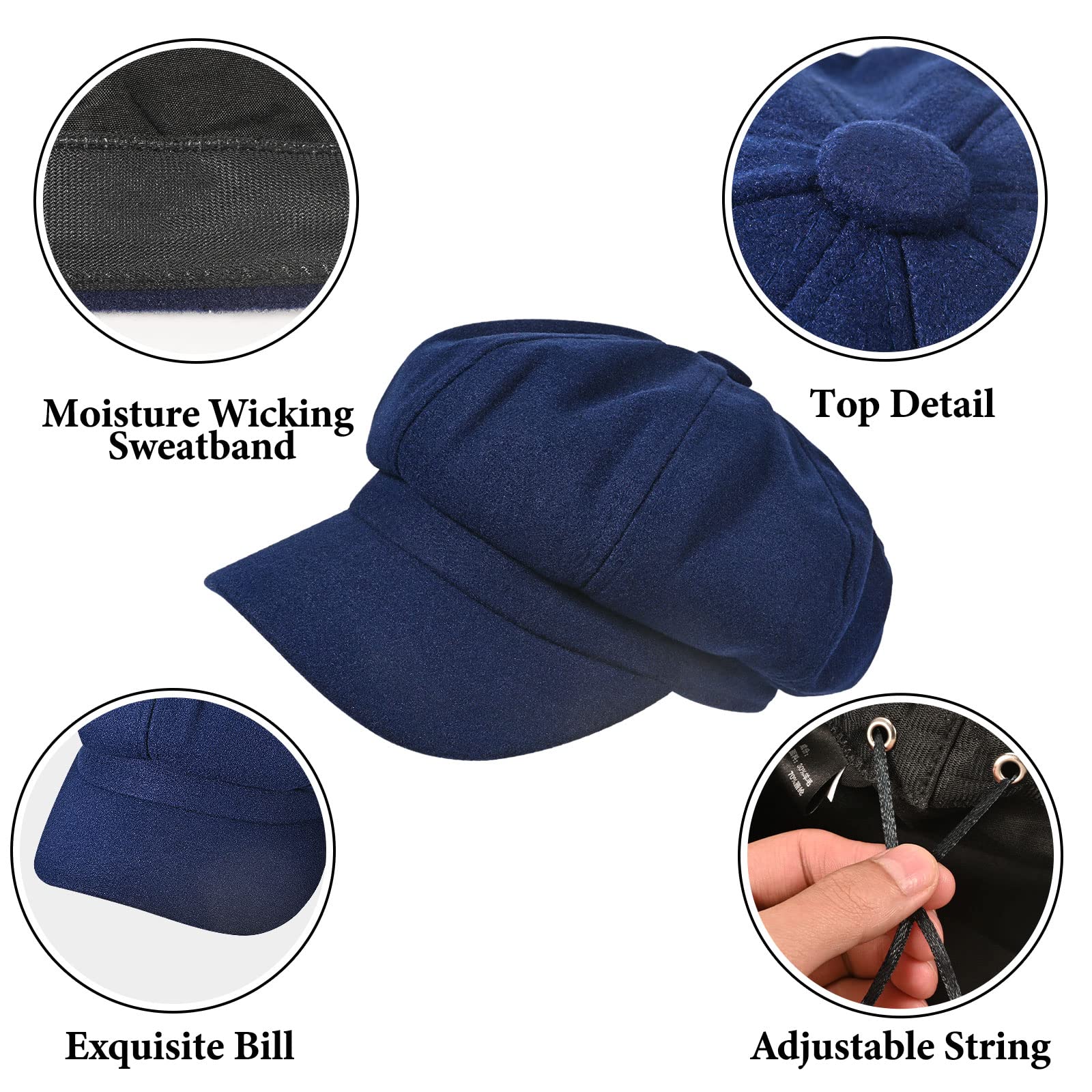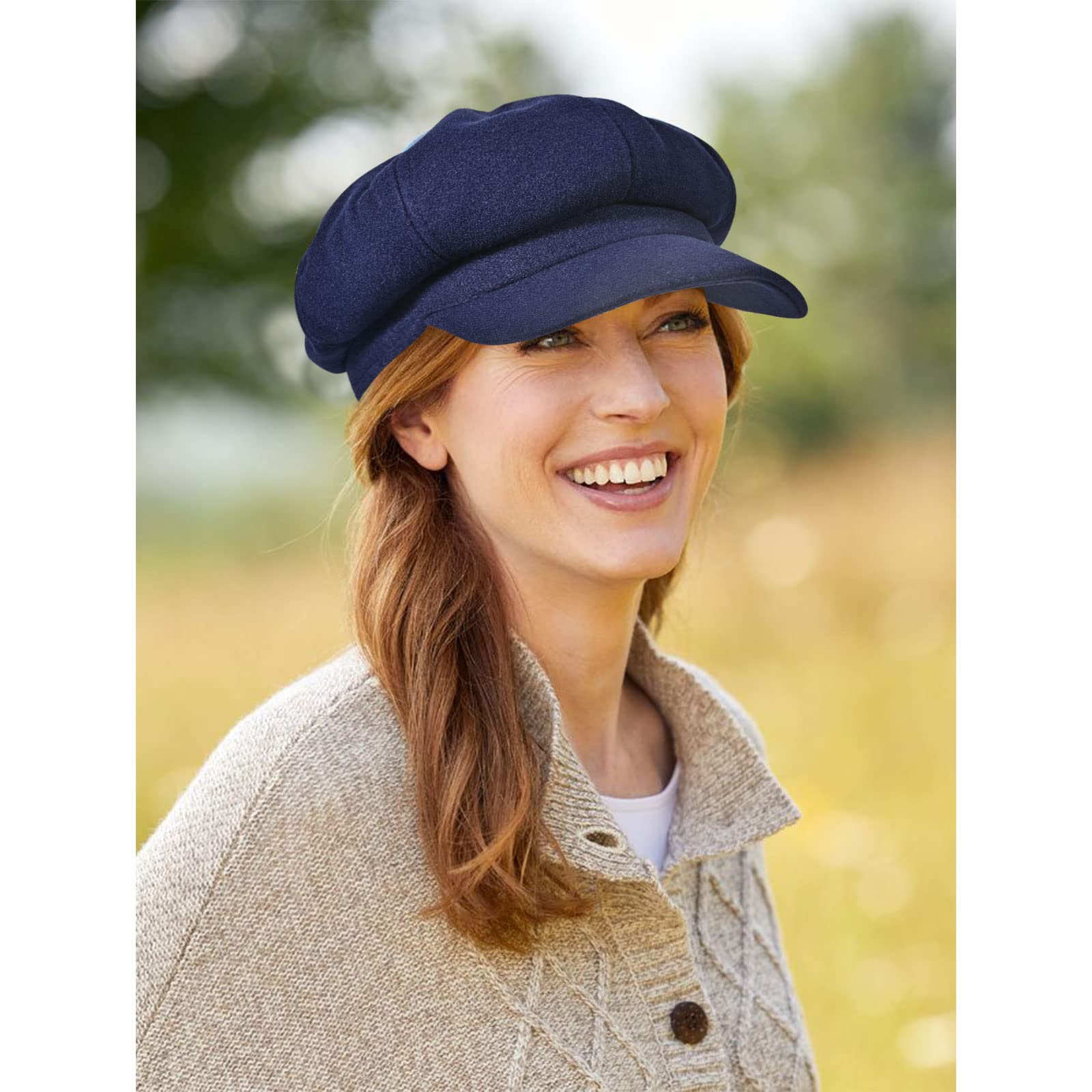 Women's newsboy hat made of wool and cotton, featuring a retro plain color design, suitable for girls as a fashionable sun-protective beret