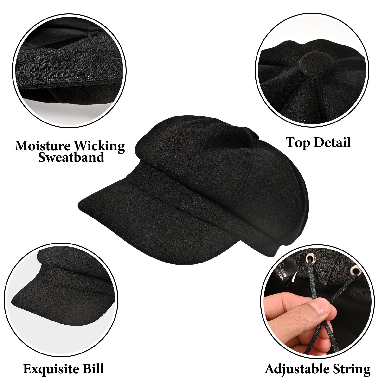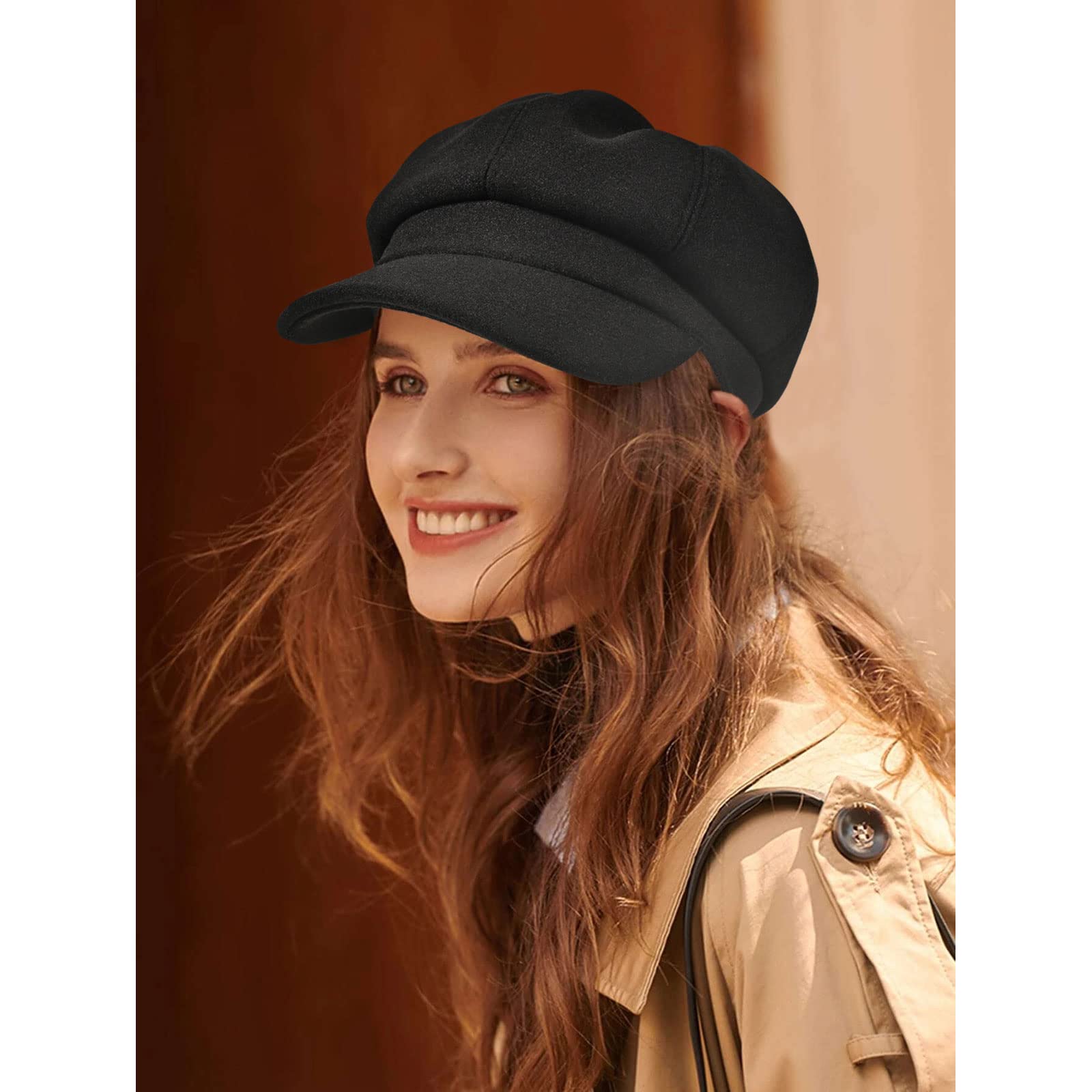 Women's newsboy hat made of wool and cotton, featuring a retro plain color design, suitable for girls as a fashionable sun-protective beret
