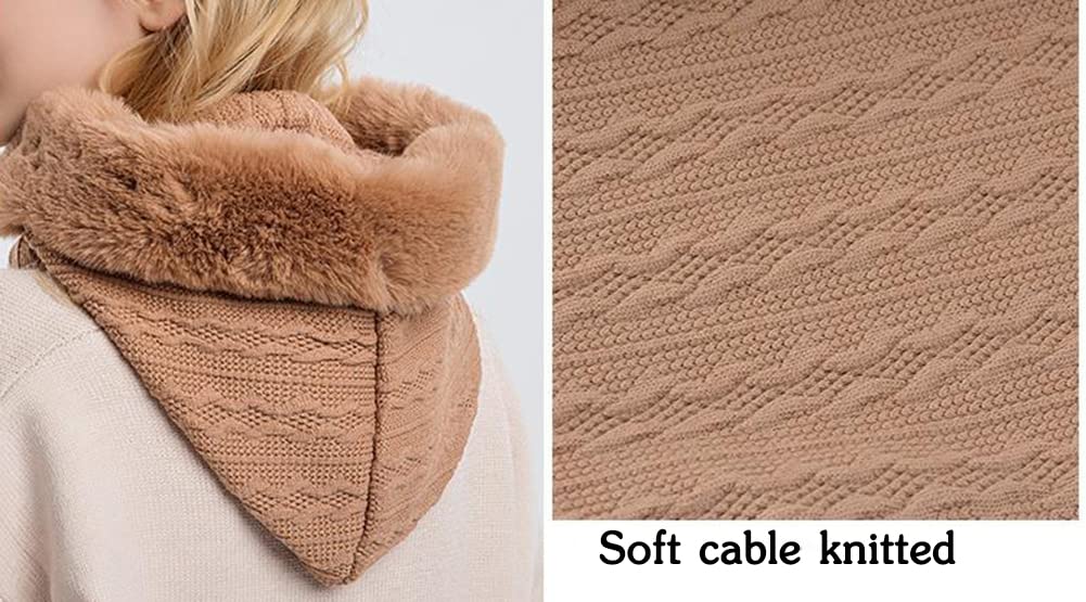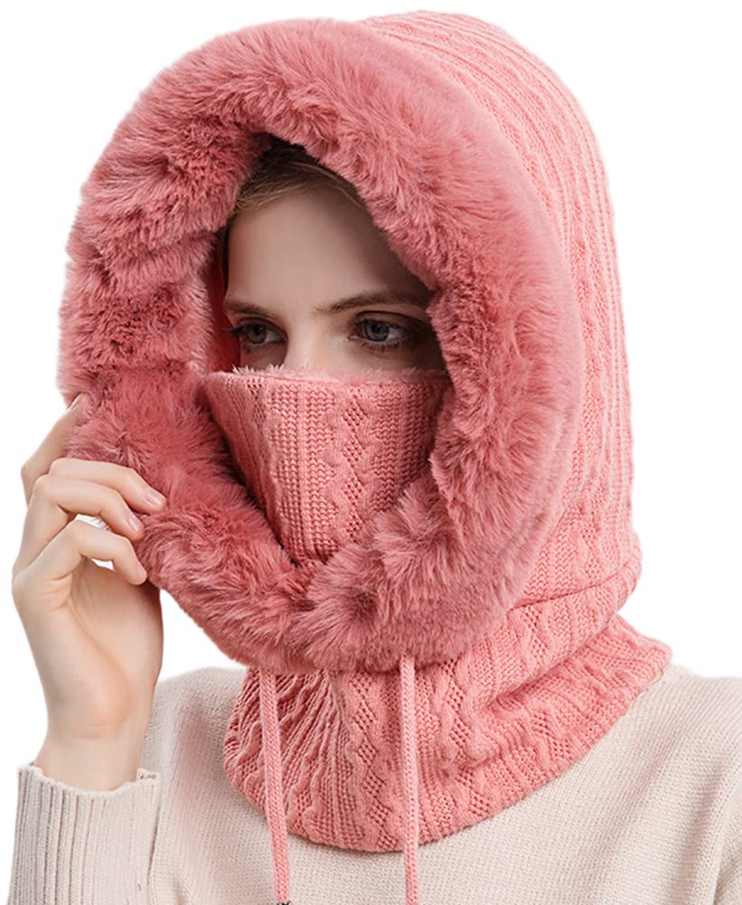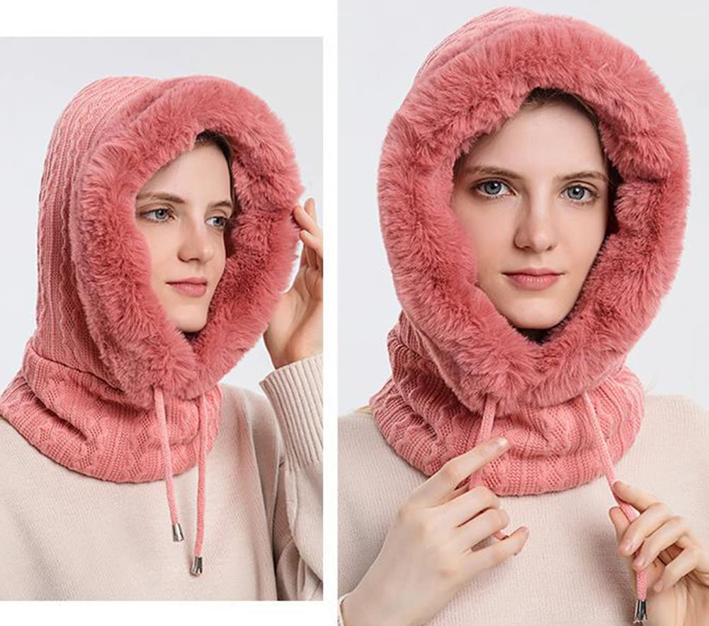 Women's one-piece relaxed wool beanie scarf mask drawstring warm hood winter balaclava hat pullover knitted cap
