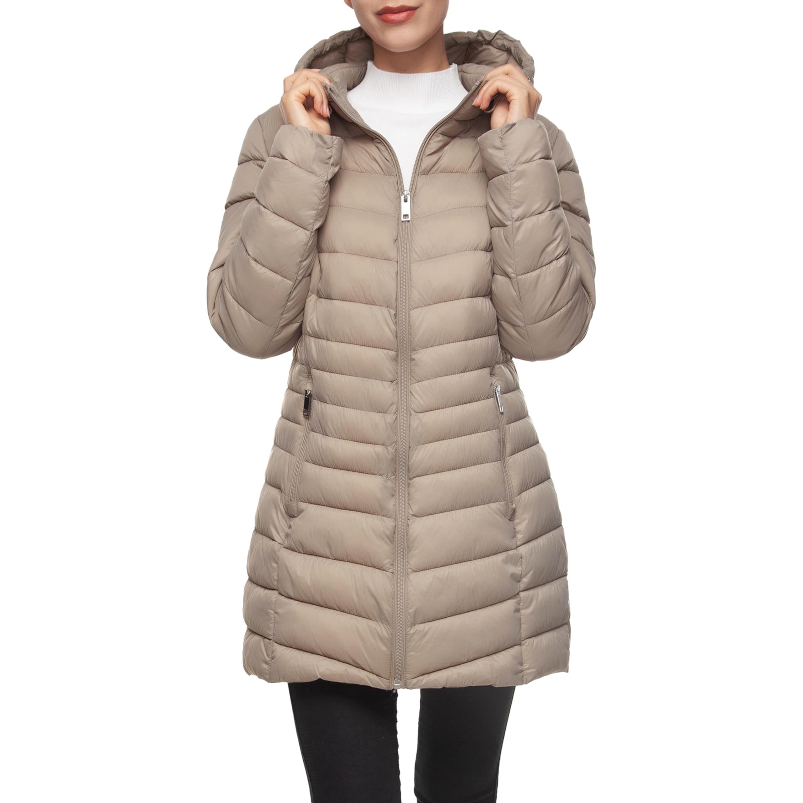 Women's Packable Lightweight Puffer Jacket Water-Resistant Hooded Winter Long Coat