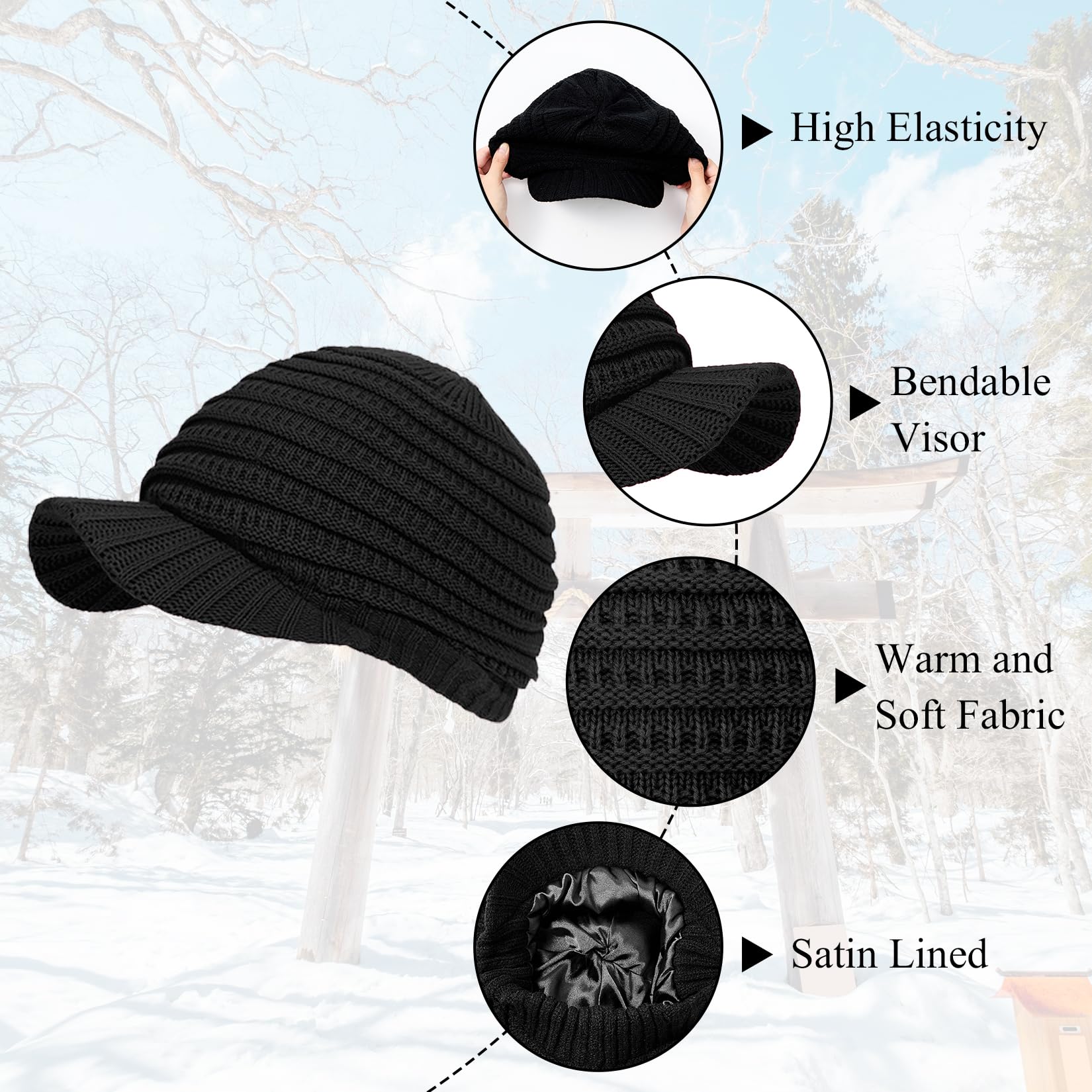 Women's satin-lined winter hat with brim, laid-back newsboy style brimless hat, a warm and breathable sun hat suitable for cold weather