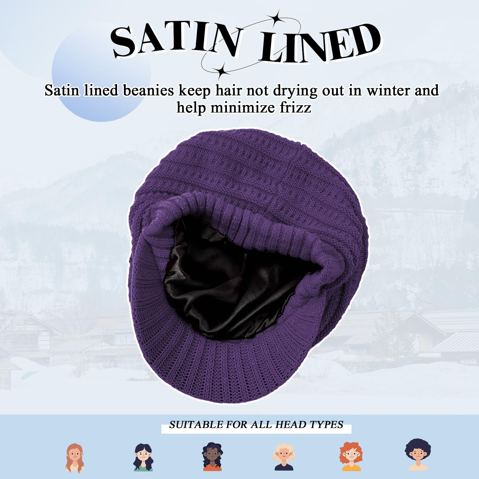 Women's satin-lined winter hat with brim, laid-back newsboy style brimless hat, a warm and breathable sun hat suitable for cold weather