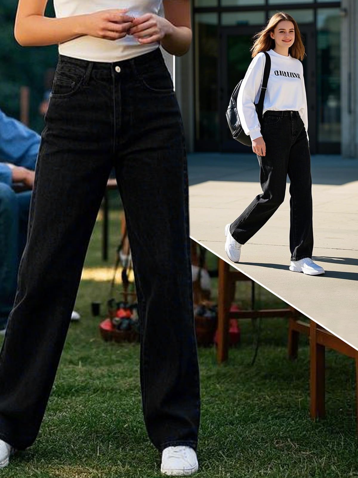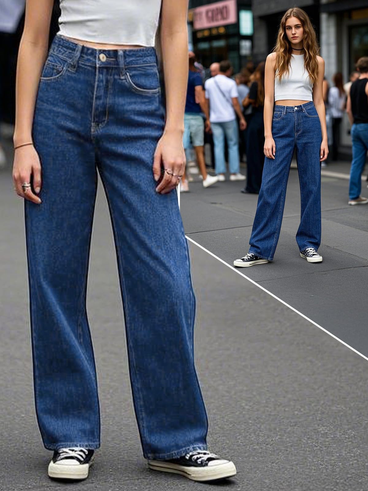 Women's Straight Leg Jeans Tummy Control Trendy High Waisted Stretchy Casual Denim Pants Baggy Trousers