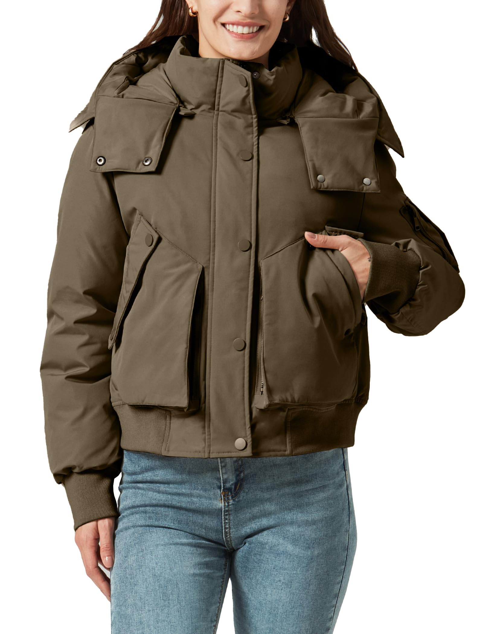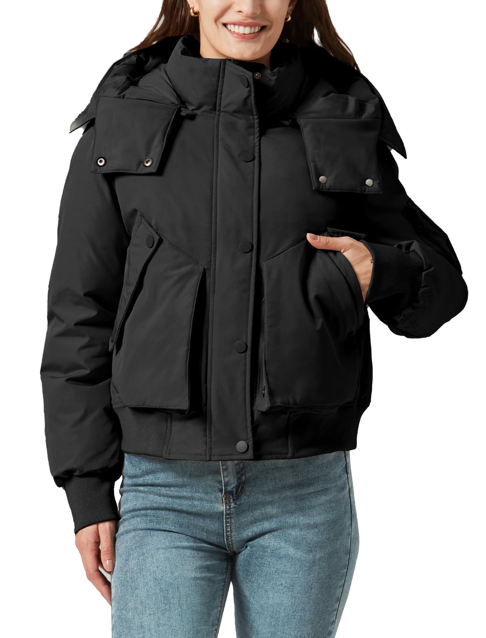 Women's Thickened Jackets Winter Warm Down Coat Multi-pocket with Removable Hood