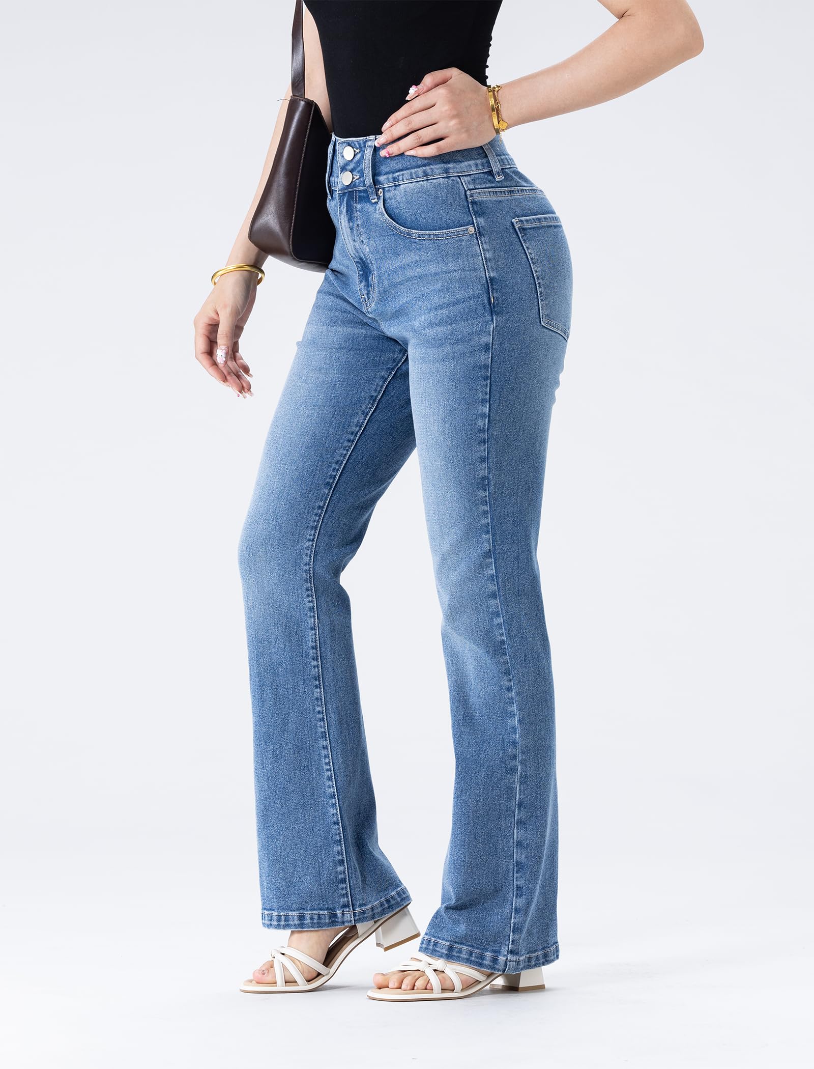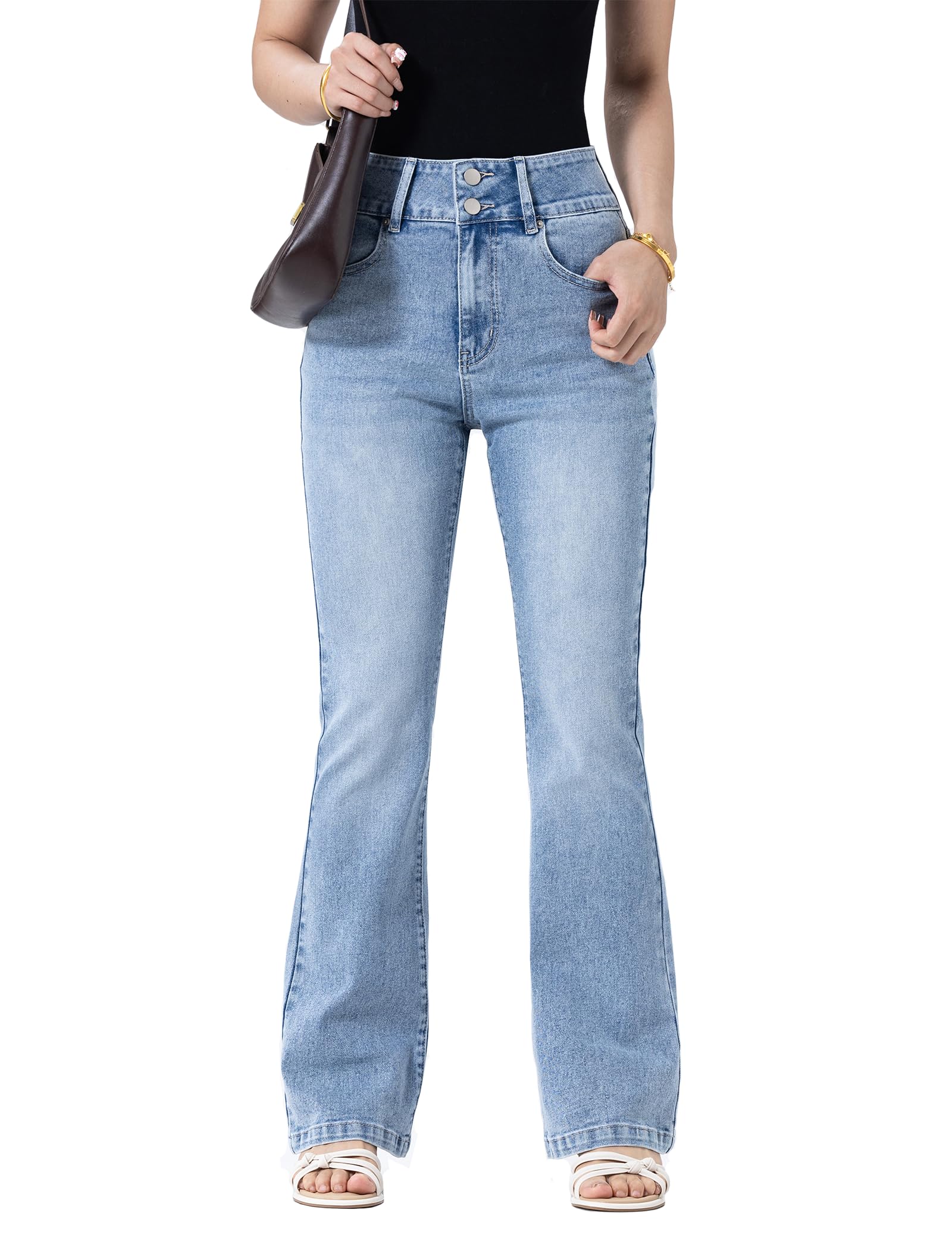 Women's Wide Leg Flare Jeans,High Waisted Baggy Stretch Denim Pants