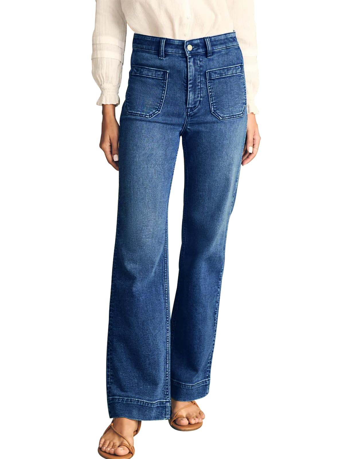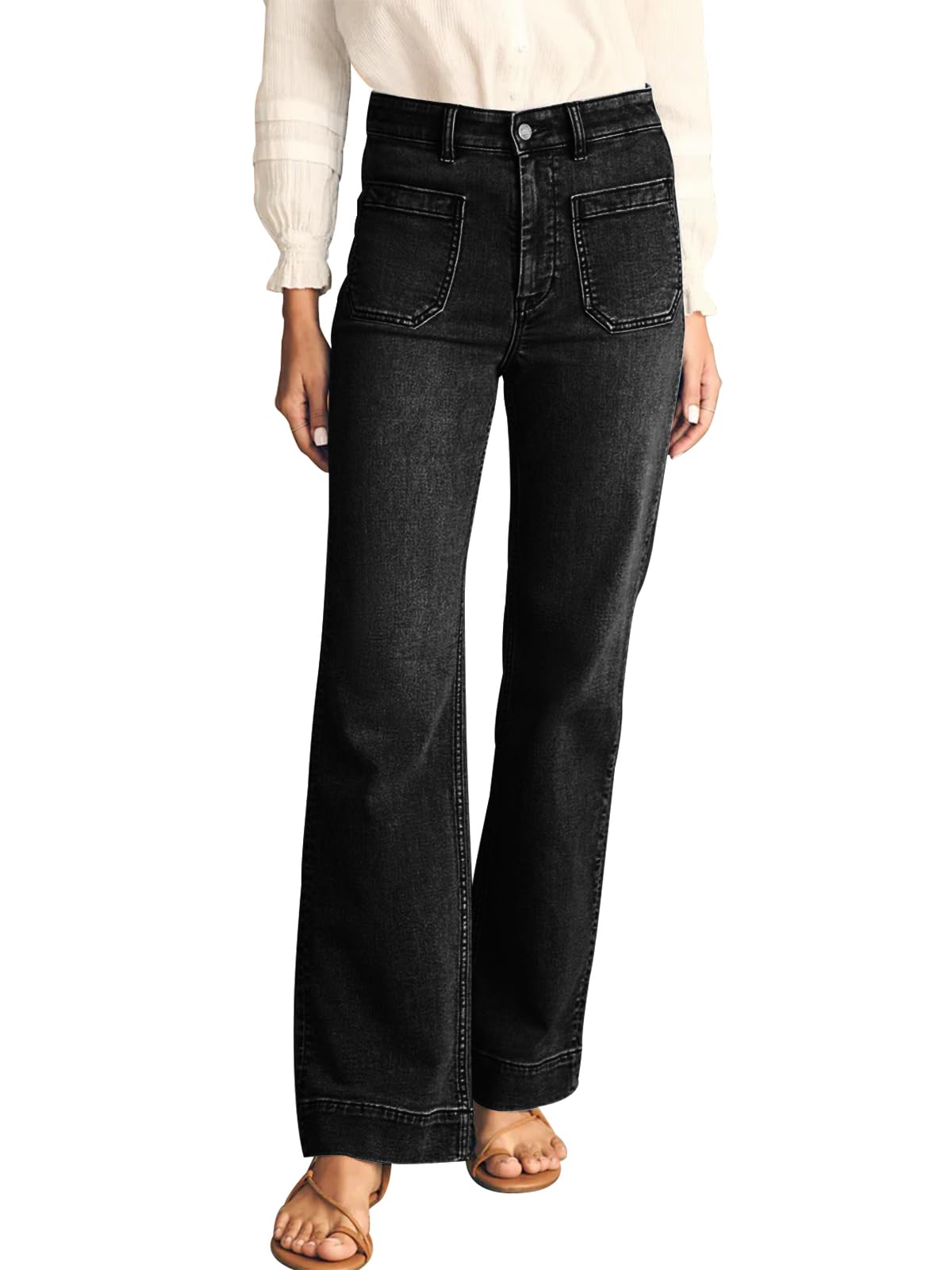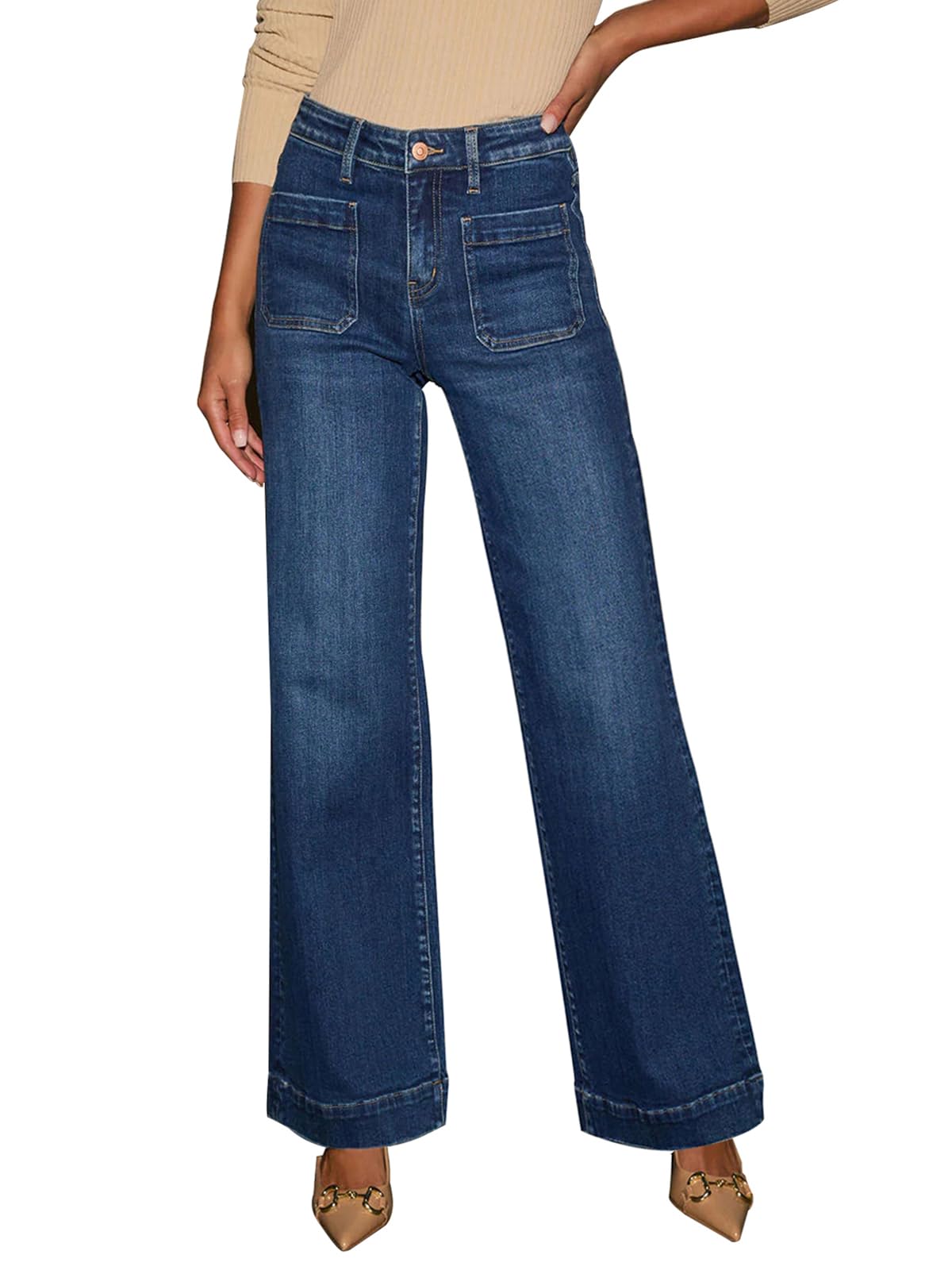Women's Wide Leg Jeans High Waisted Straight Leg Stretchy Denim Pants with Pockets
