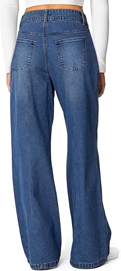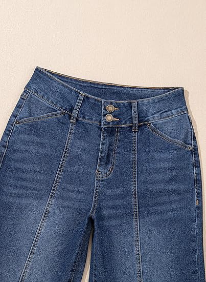 Women's Wide Leg Jeans High Waisted Stretchy Straight Leg Jeans Trendy Seamed Front Loose Denim Pants