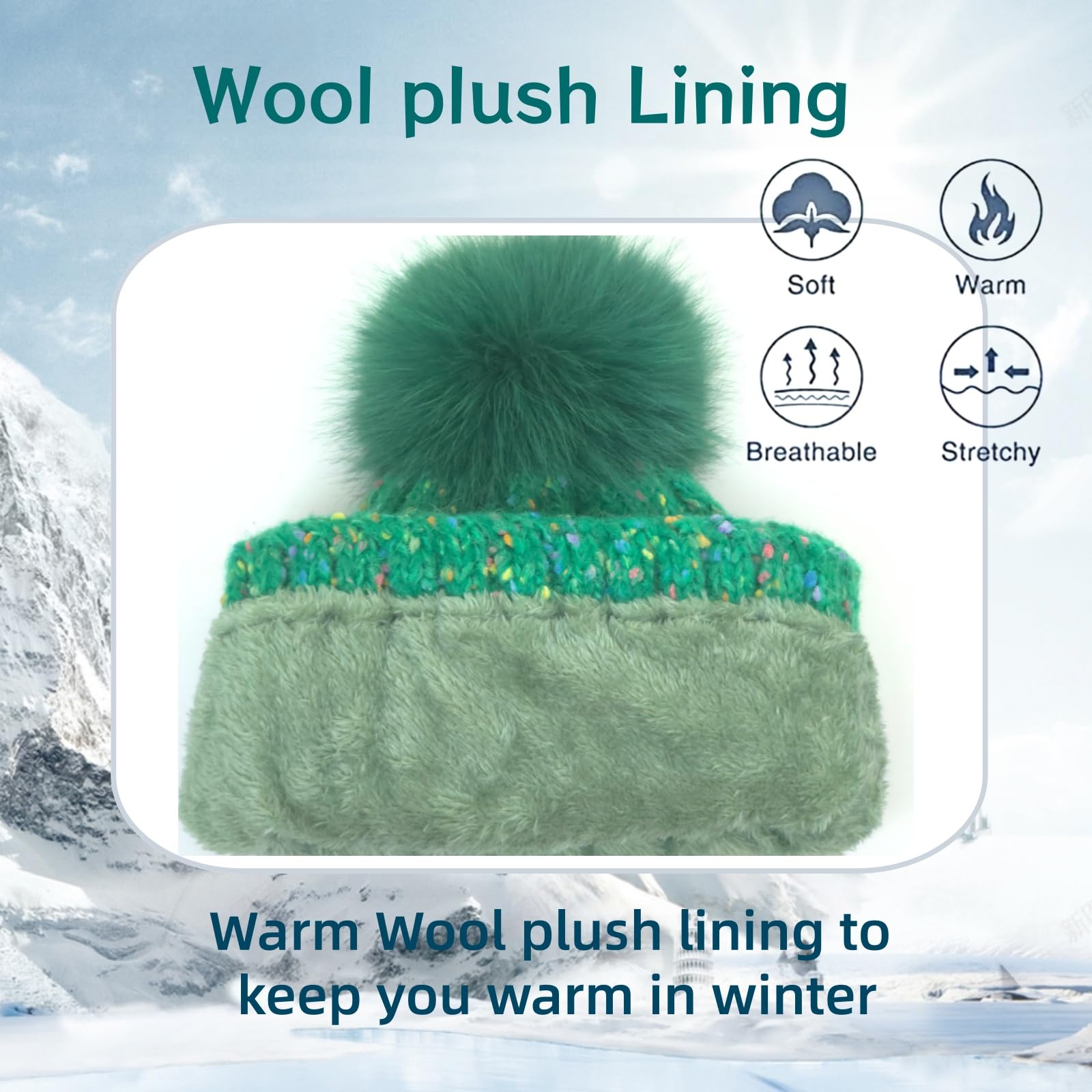 Women's winter brimless hat - Fleece inner layer, chunky knit Pom-Pom long sock hat, suitable for girls in cold weather