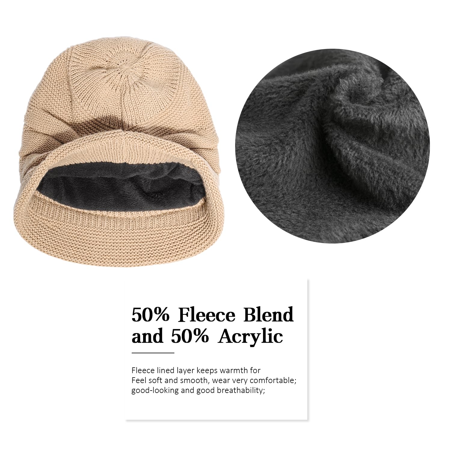 Women's winter brimless hat, with wool lining for warmth, knitted casual brimless hat with sun protection cap functionality