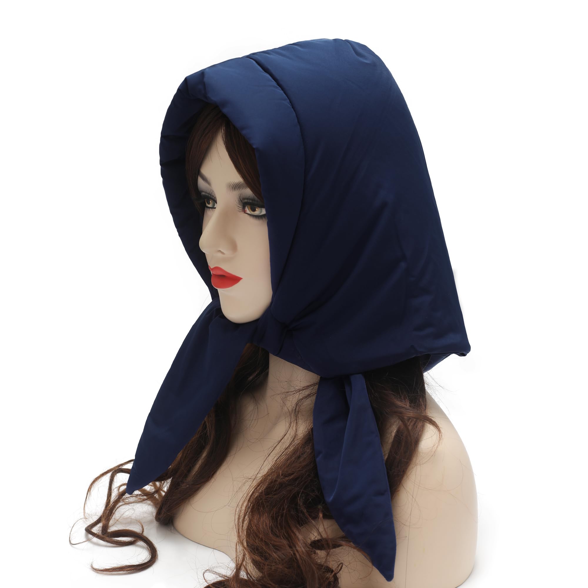 Women's winter down hat with windproof hood and soft warm scarf Balakrava skull cap without brim