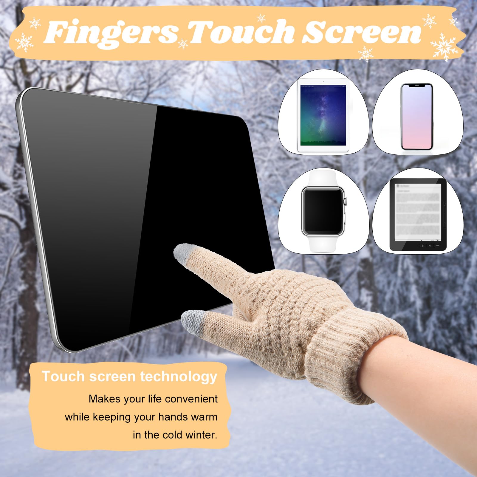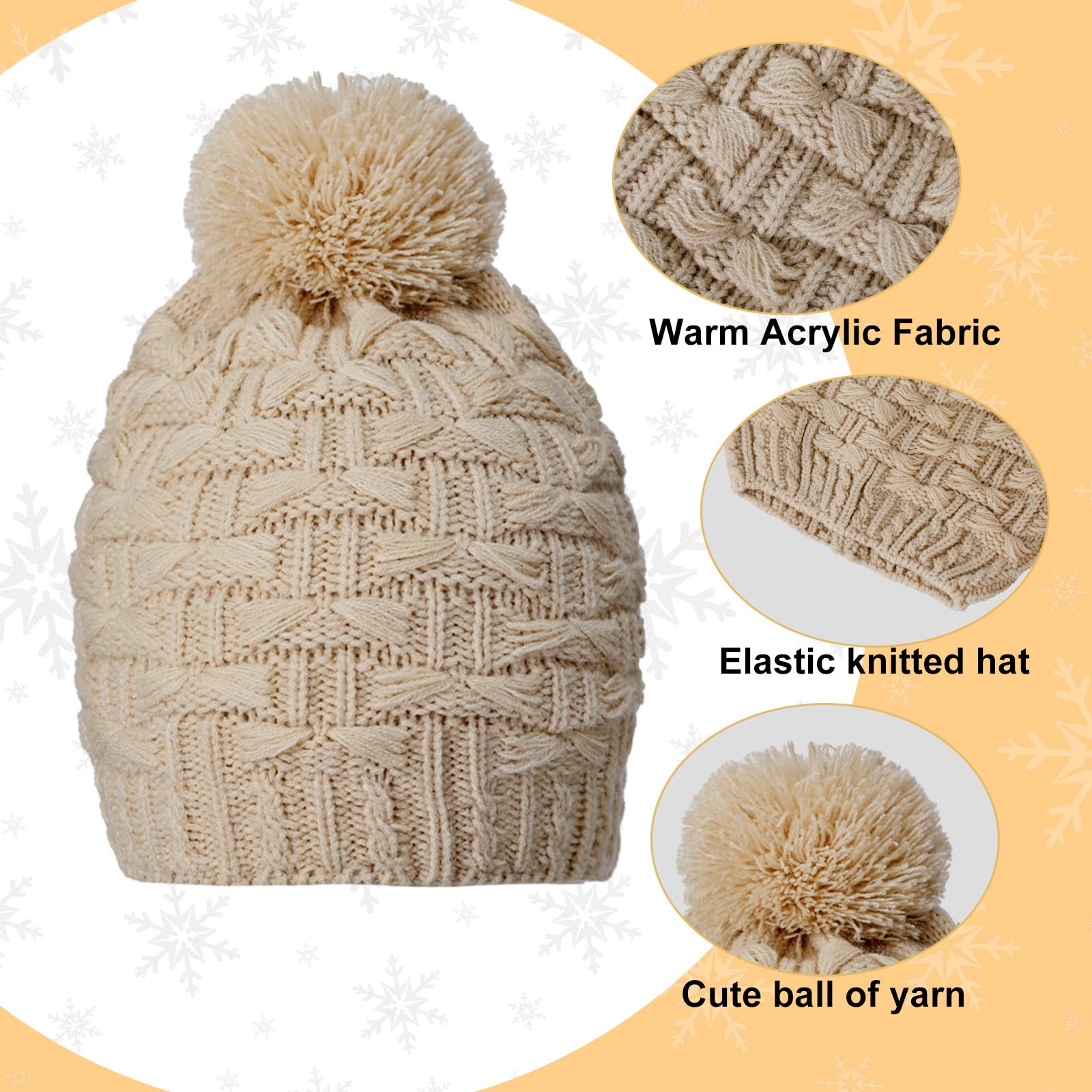 Women's winter hat, scarf and gloves set, including earmuffs, cold weather scarf, hat, knitted without brim, scarf and gloves