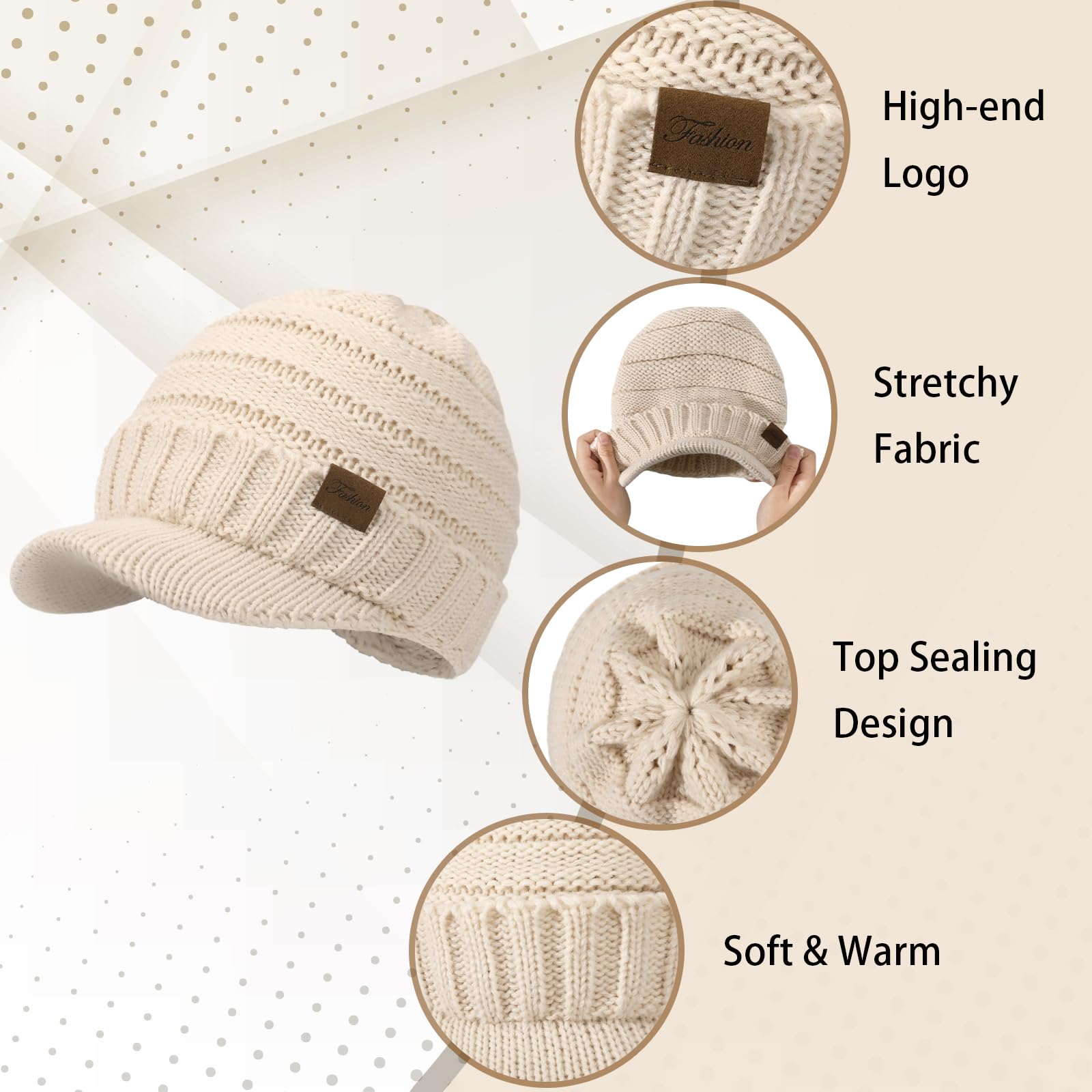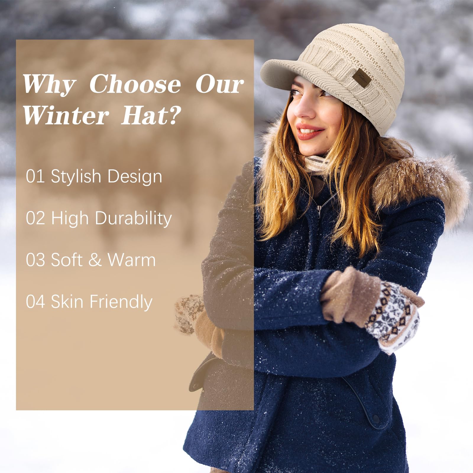 Women's winter hat - Thick and warm fashionable knitted brimless hat, soft and elastic cute women's winter hat with sun protection cap