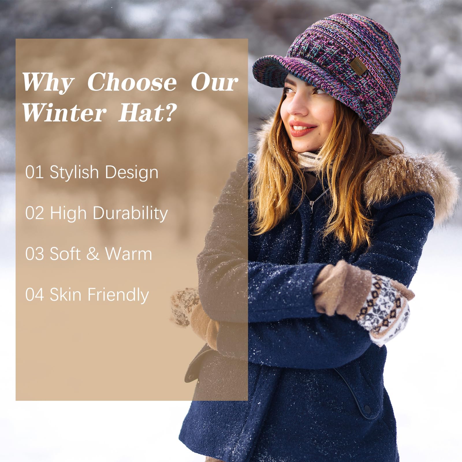 Women's winter hat - Thick and warm fashionable knitted brimless hat, soft and elastic cute women's winter hat with sun protection cap