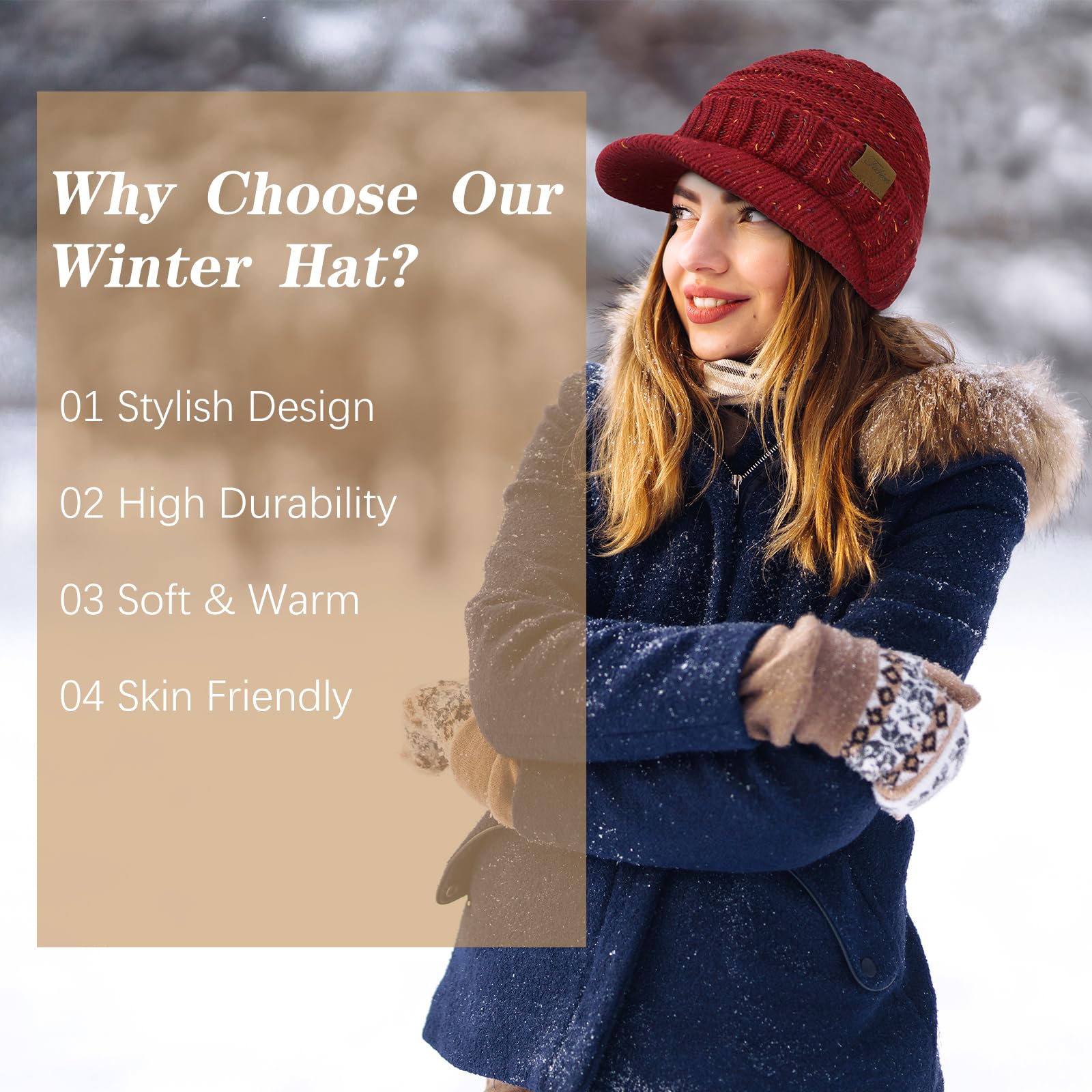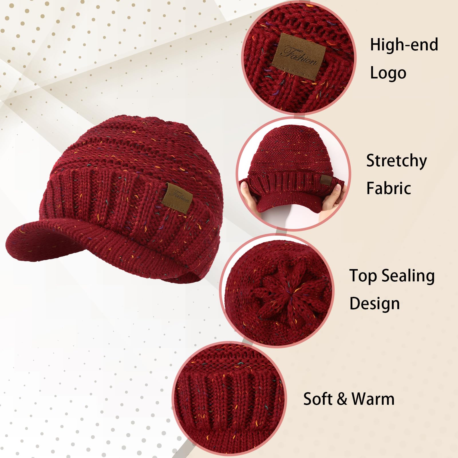 Women's winter hat - Thick and warm fashionable knitted brimless hat, soft and elastic cute women's winter hat with sun protection cap