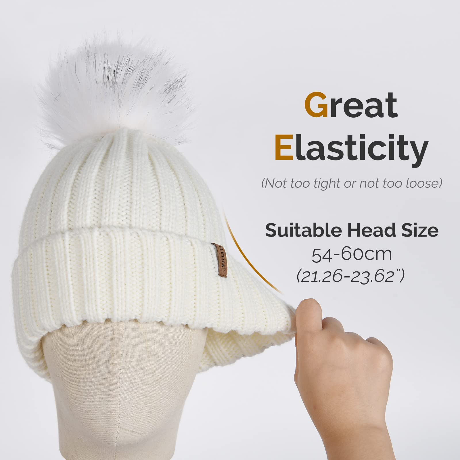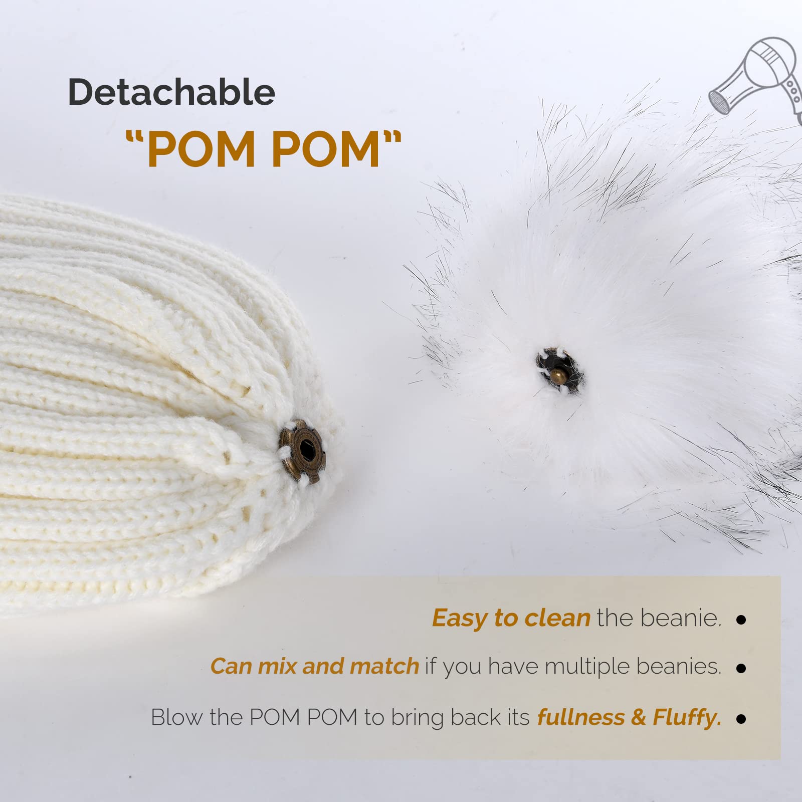 Women's winter knitted beanie without brim, knitted skull cap with artificial pompoms for warmth, women's beanie without brim