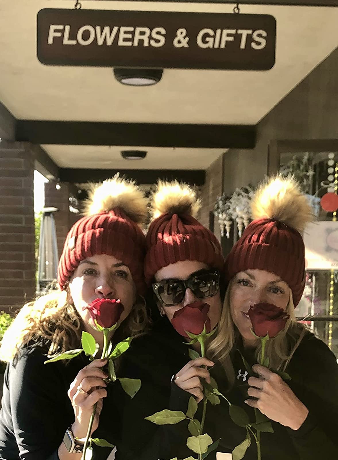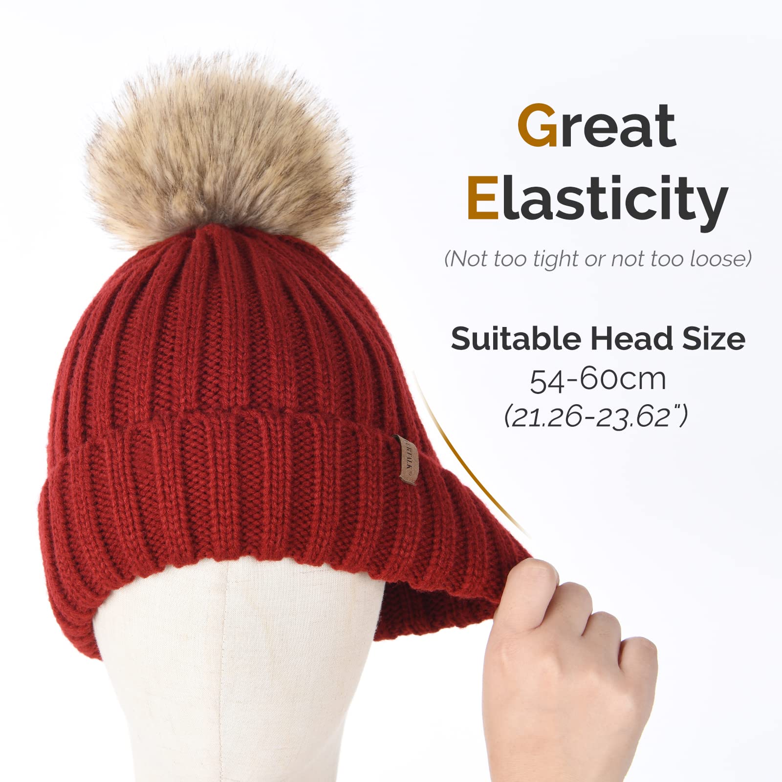 Women's winter knitted beanie without brim, knitted skull cap with artificial pompoms for warmth, women's beanie without brim