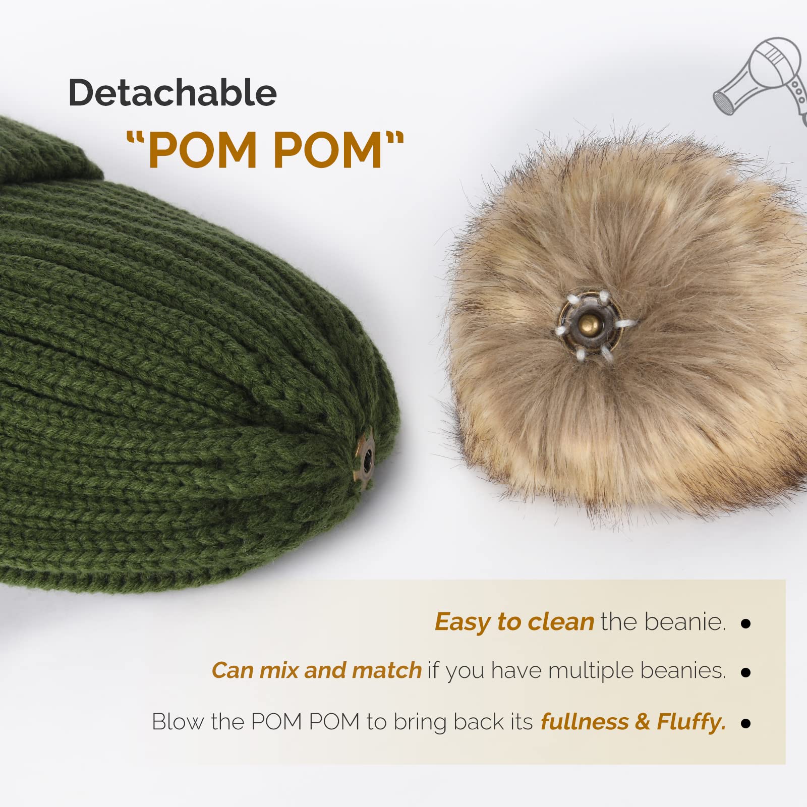 Women's winter knitted beanie without brim, knitted skull cap with artificial pompoms for warmth, women's beanie without brim