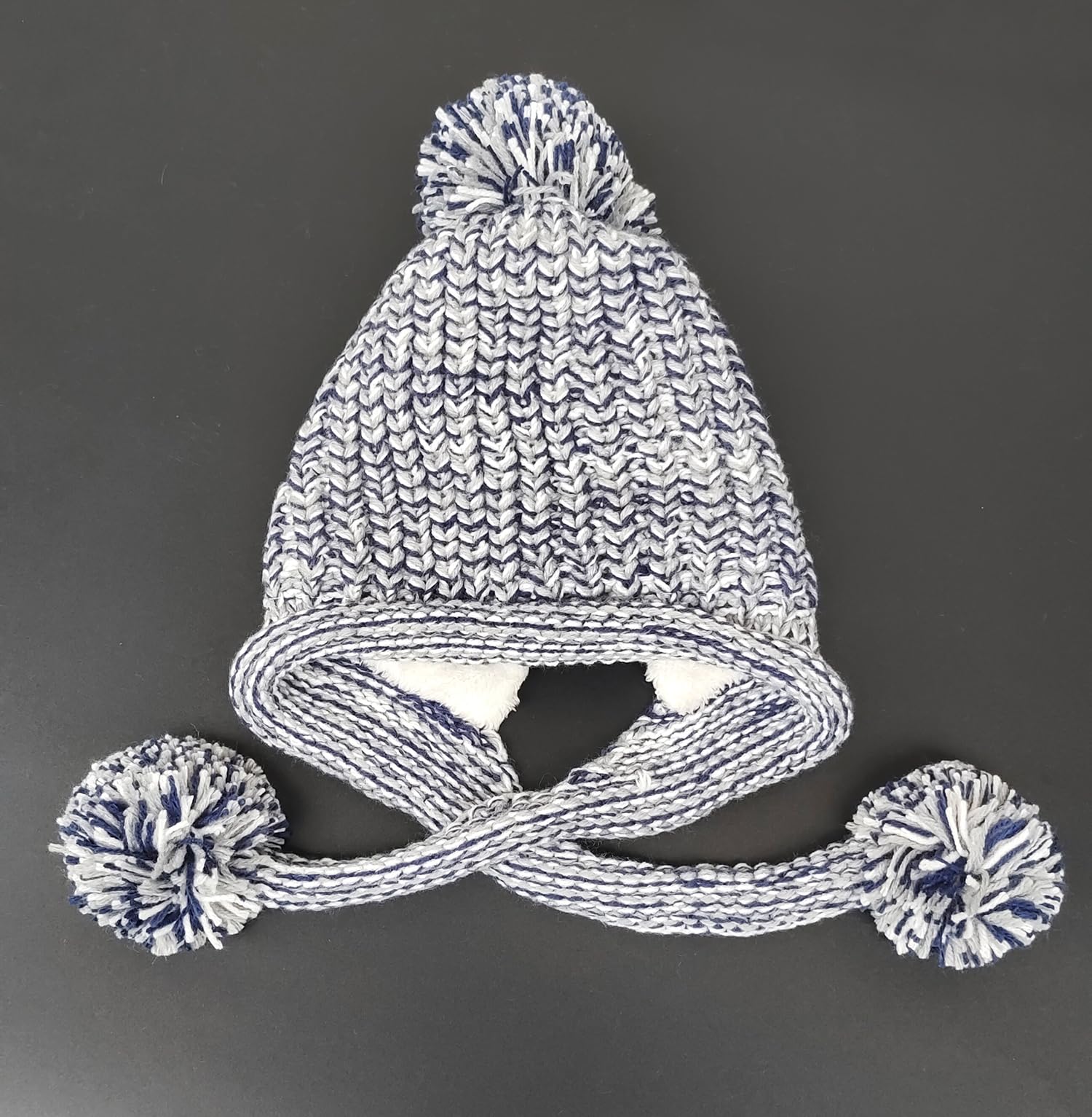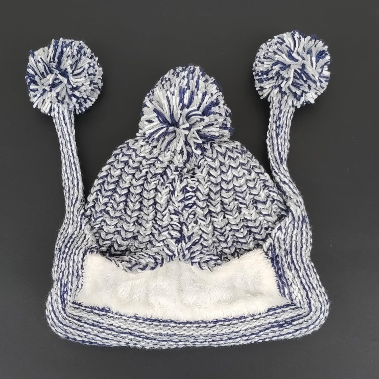Women's winter Peruvian ear-covering beanie with Sherpa lining, wool knit, 3 pom-poms for skiing and snowboarding