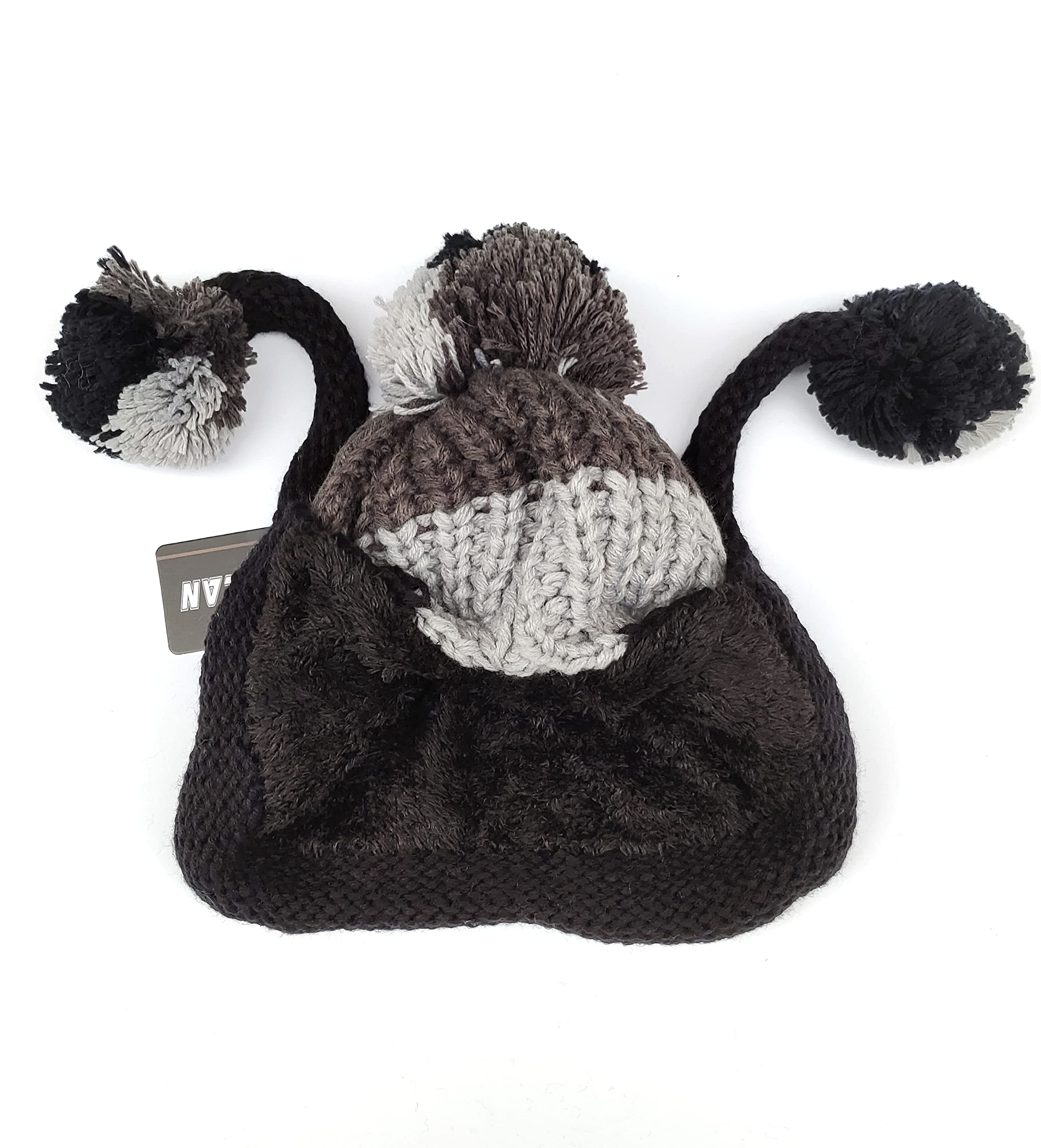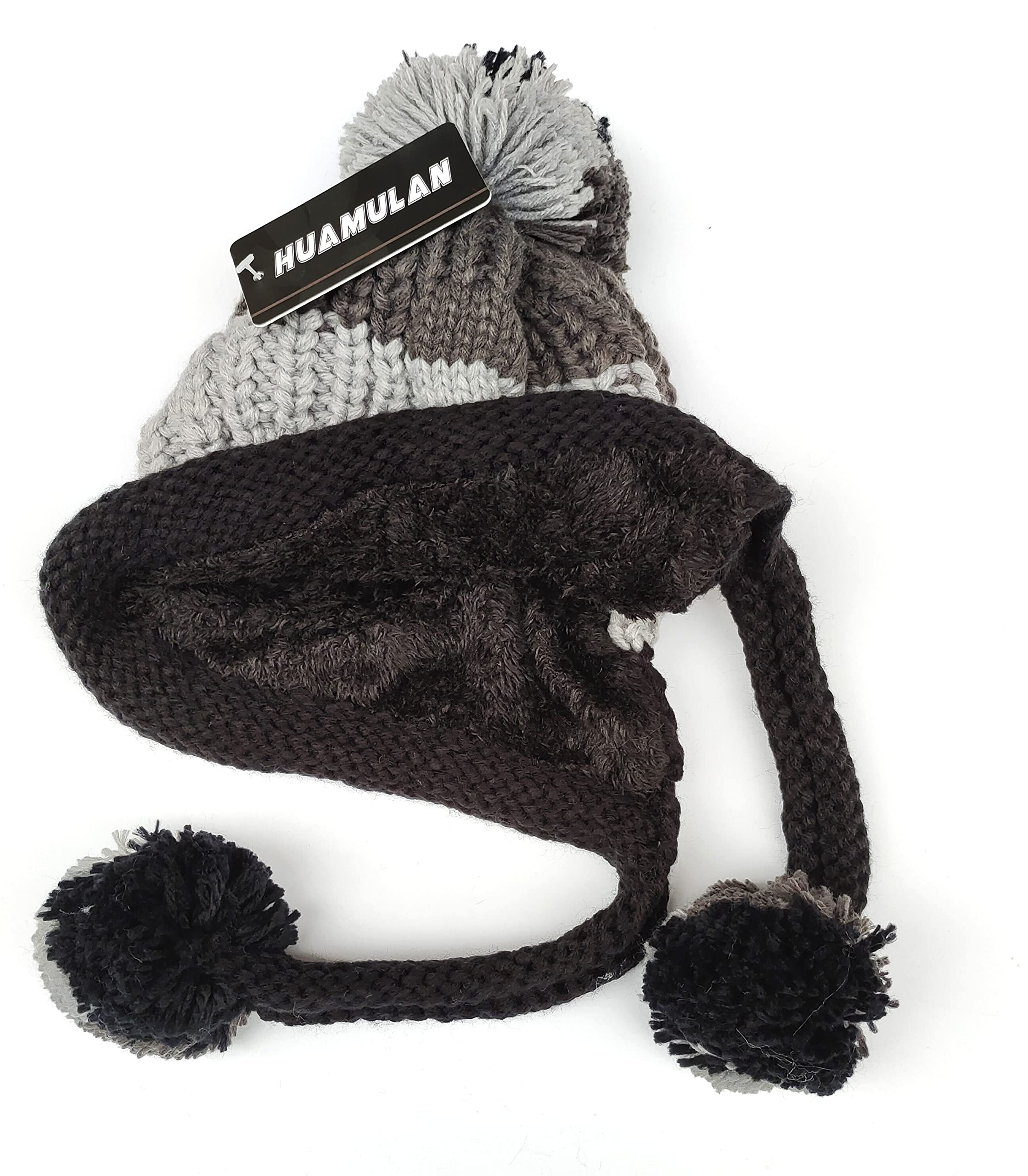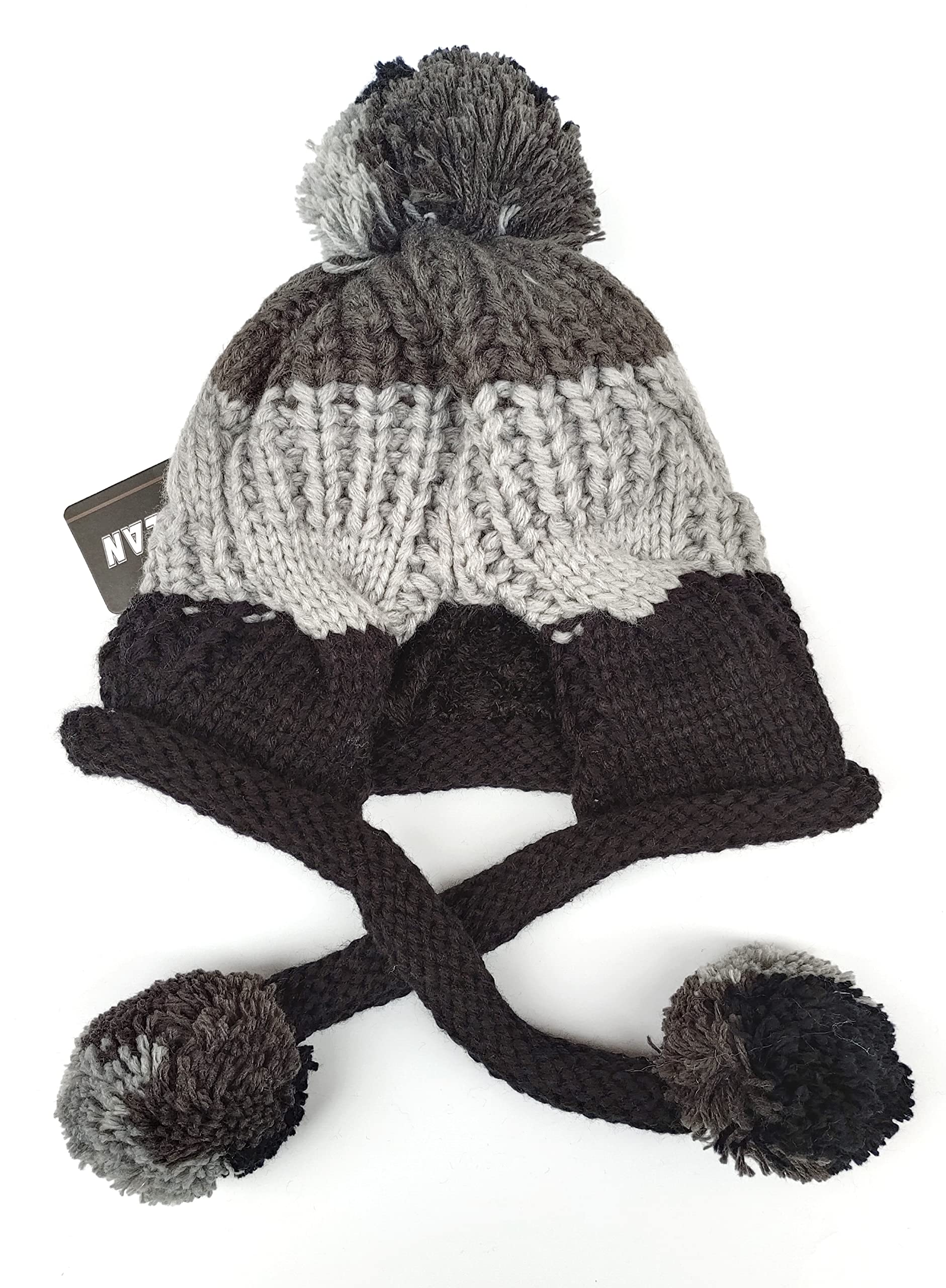 Women's winter Peruvian ear-covering beanie with Sherpa lining, wool knit, 3 pom-poms for skiing and snowboarding