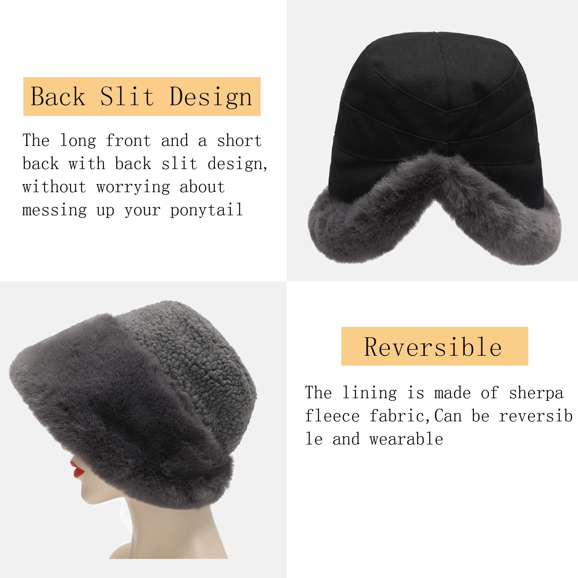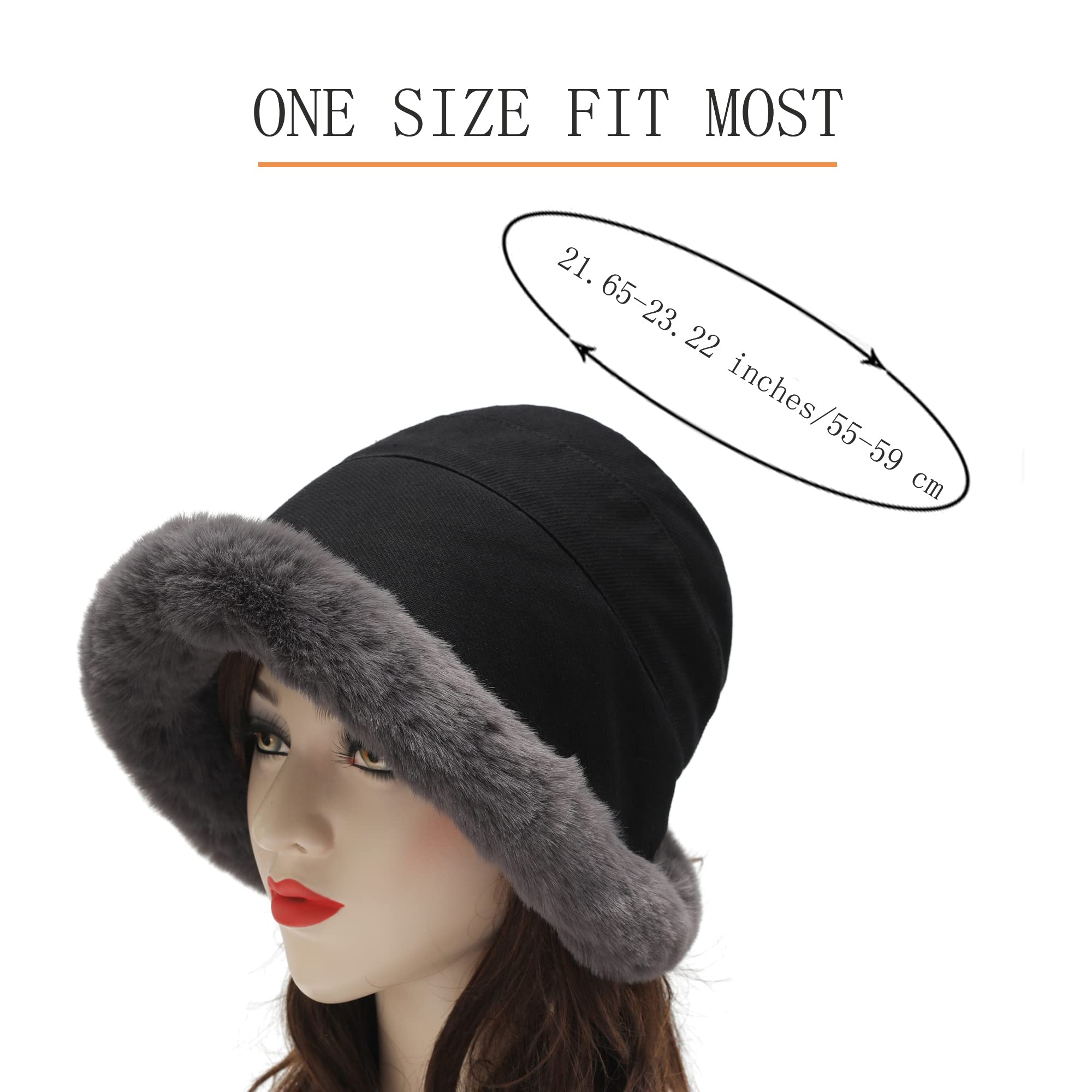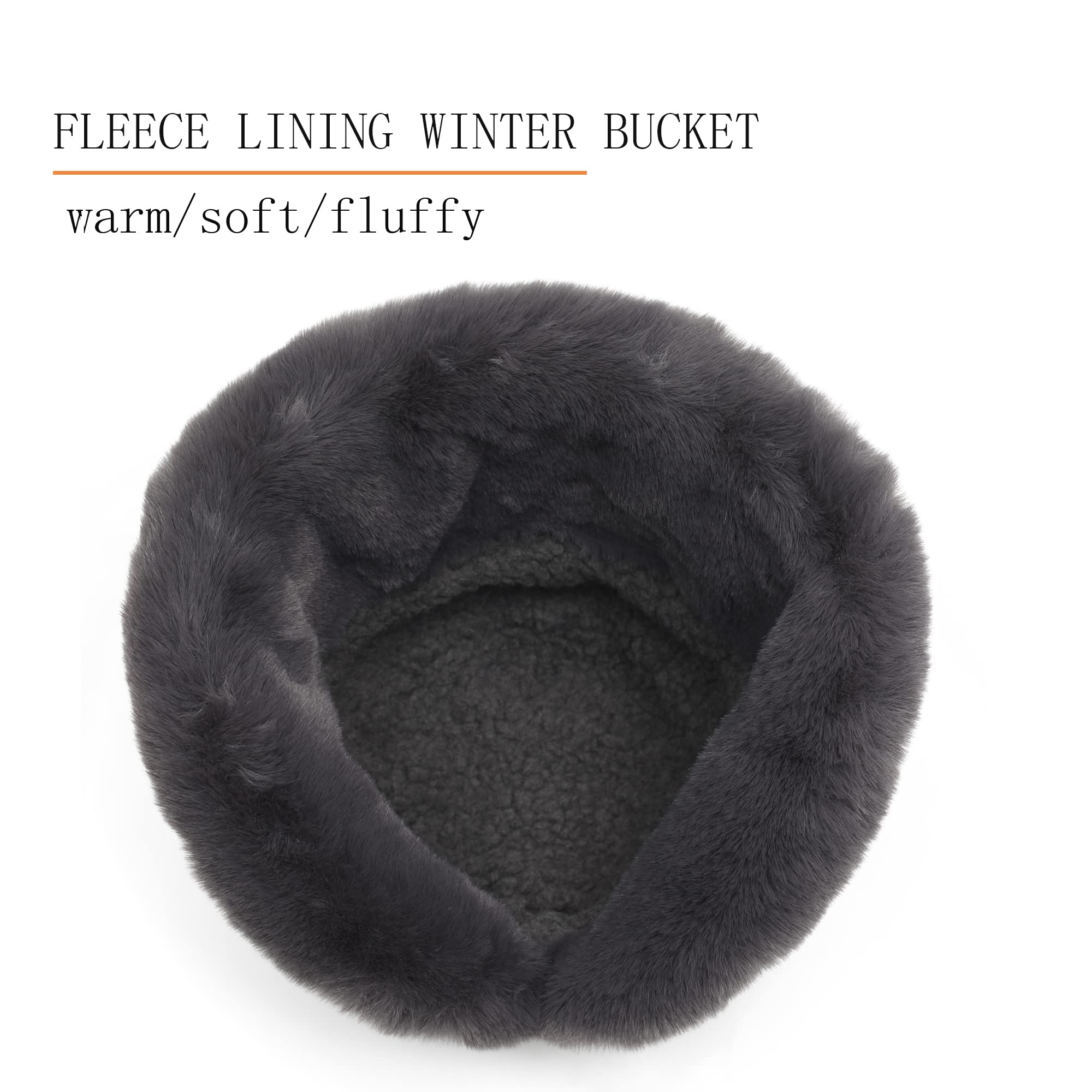 Women's winter plush fisherman hat with rolled brim and artificial fur brim shape, with wool lining