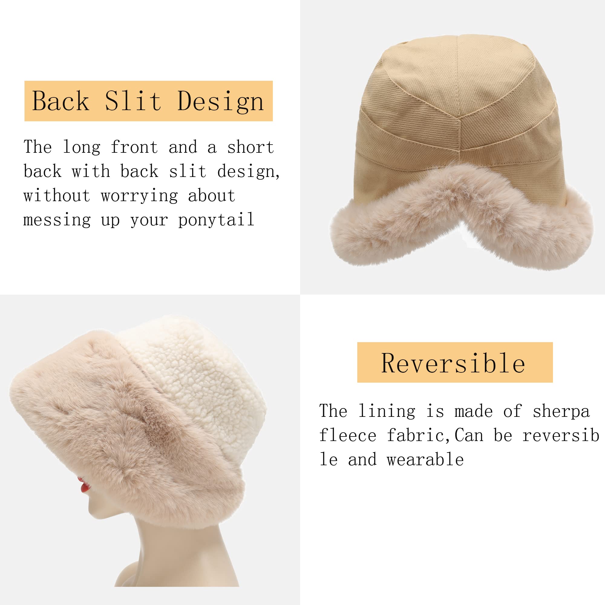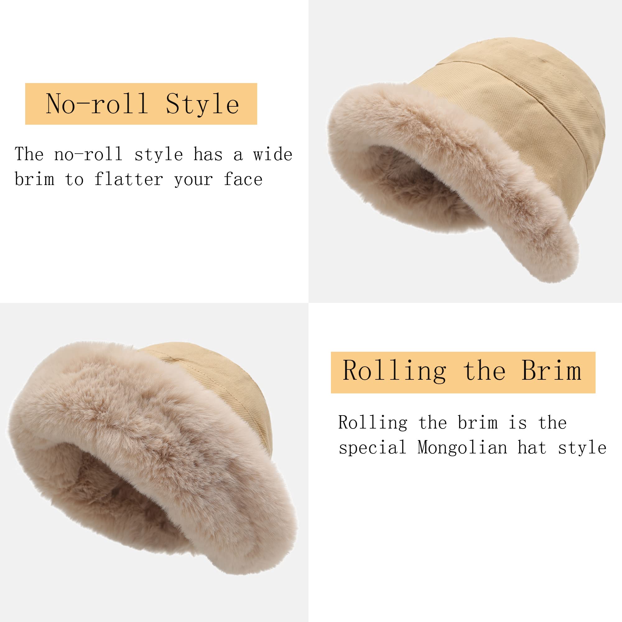Women's winter plush fisherman hat with rolled brim and artificial fur brim shape, with wool lining