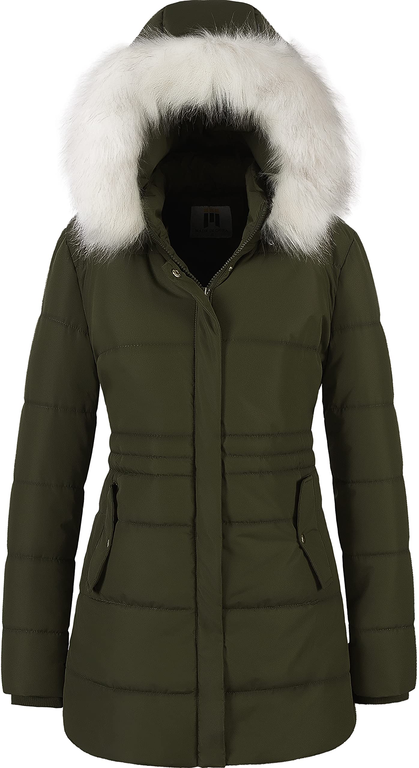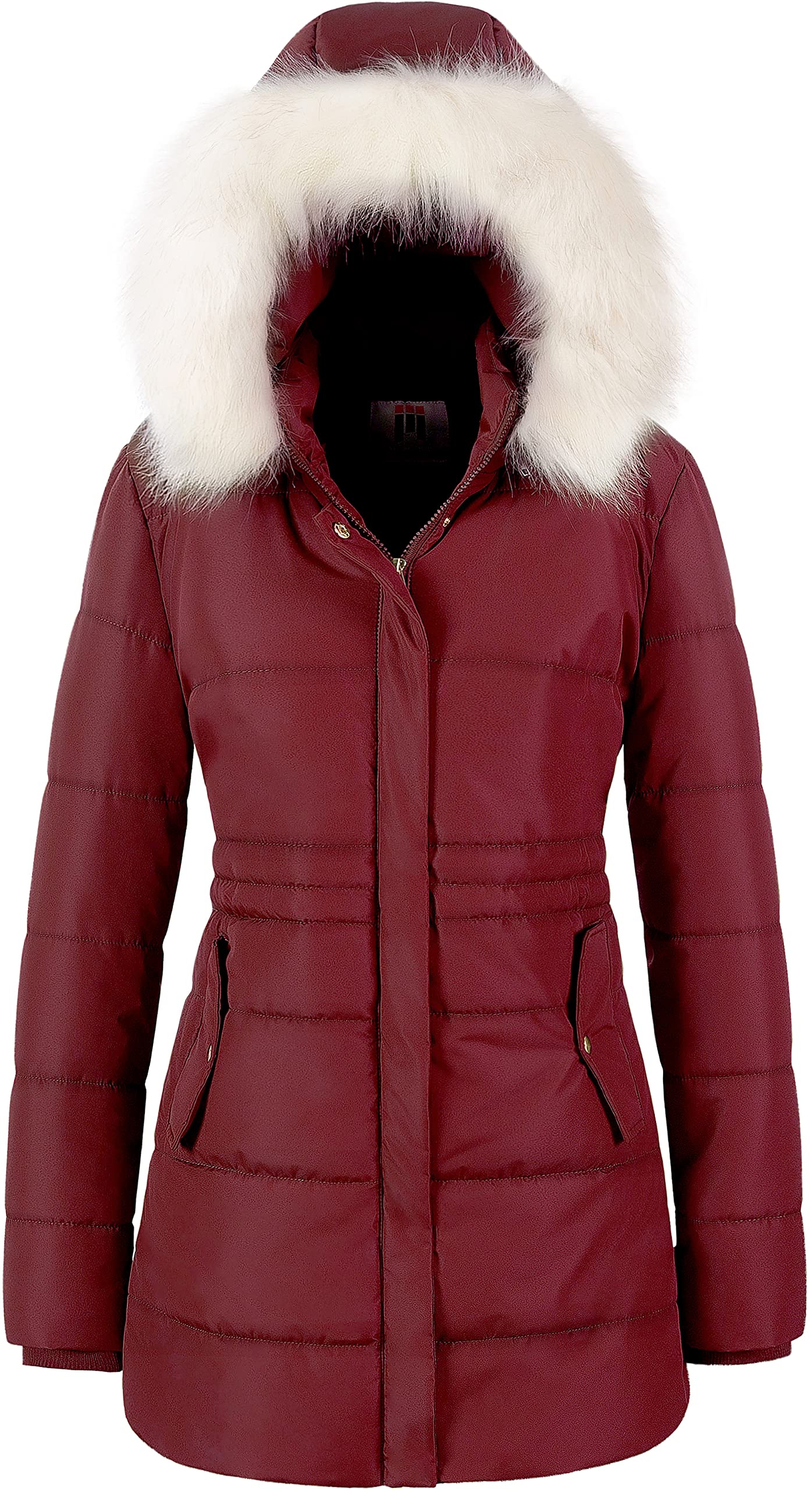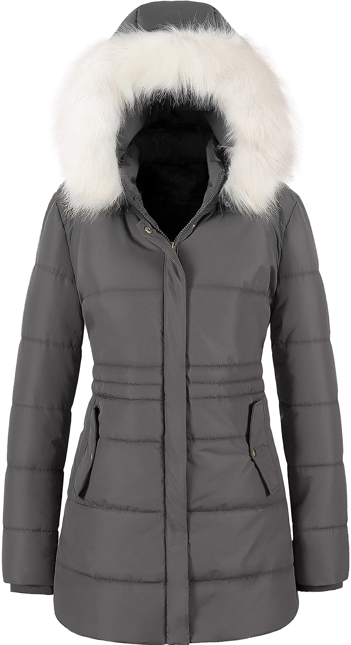 Women's Winter Warm Coats Puffer Jacket Long Drawstring Waterproof Snow Parka With Removable Faux Fur Trim Hood